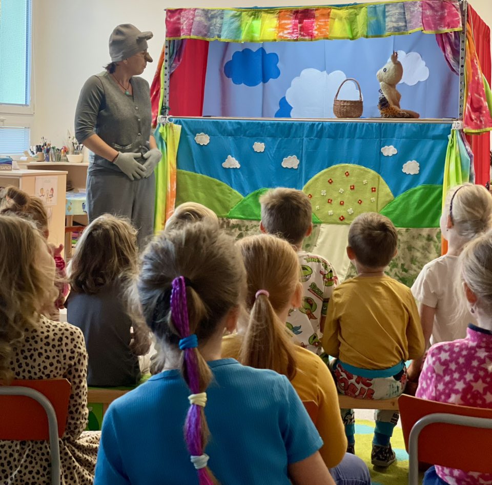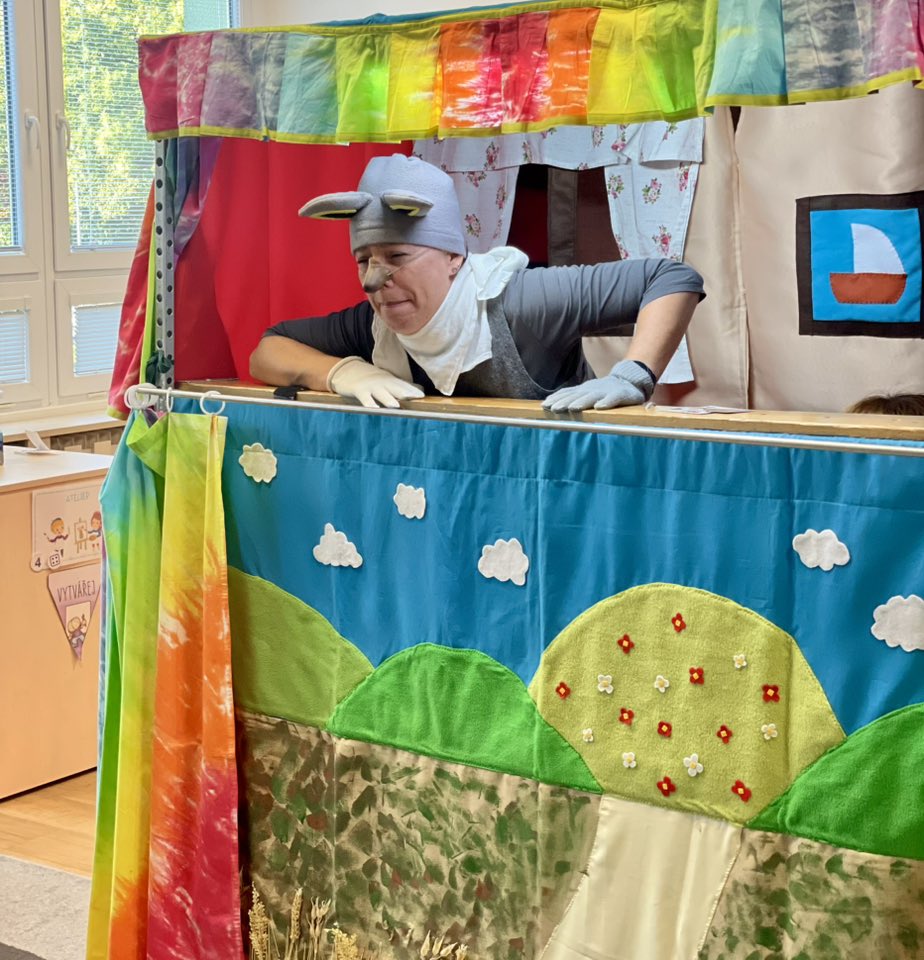 Do naší školky zavítalo 30. září 2025 divadlo Koloběžka, které si pro děti připravilo poutavé a zábavné představení „O neposlušných kůzlátkách“.