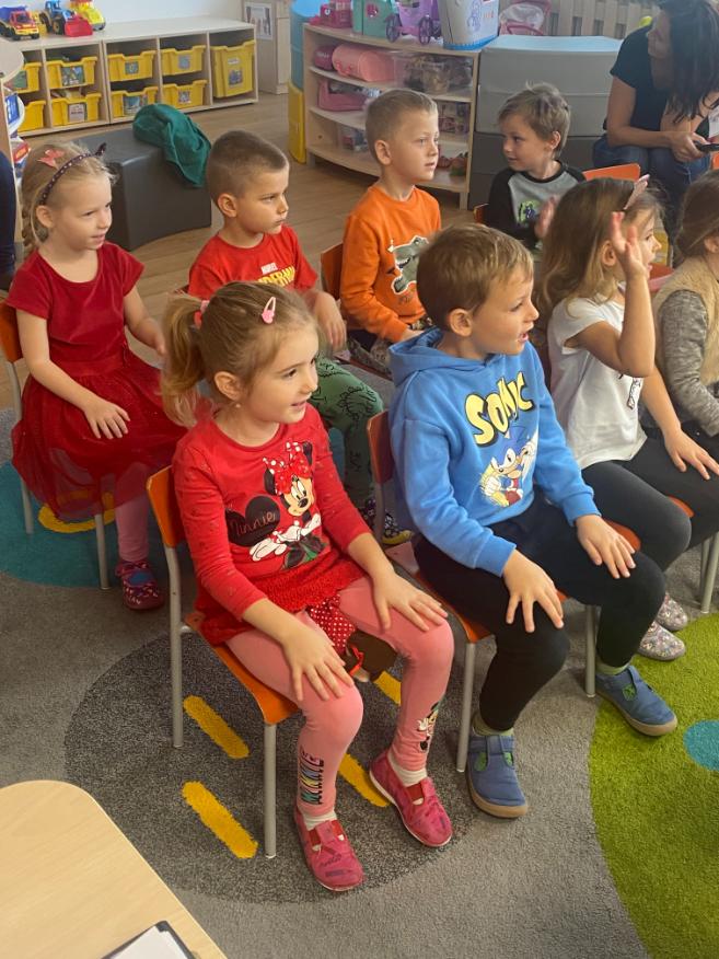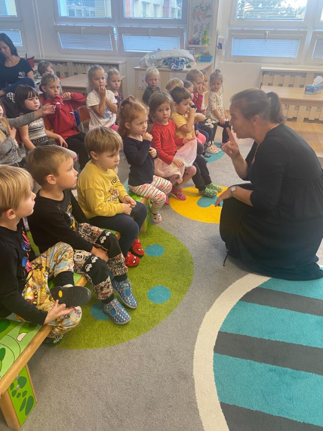 Děti si 13. října 2025 užily hudební program Muzikantný rok s paní Dagmar Čemusovou.