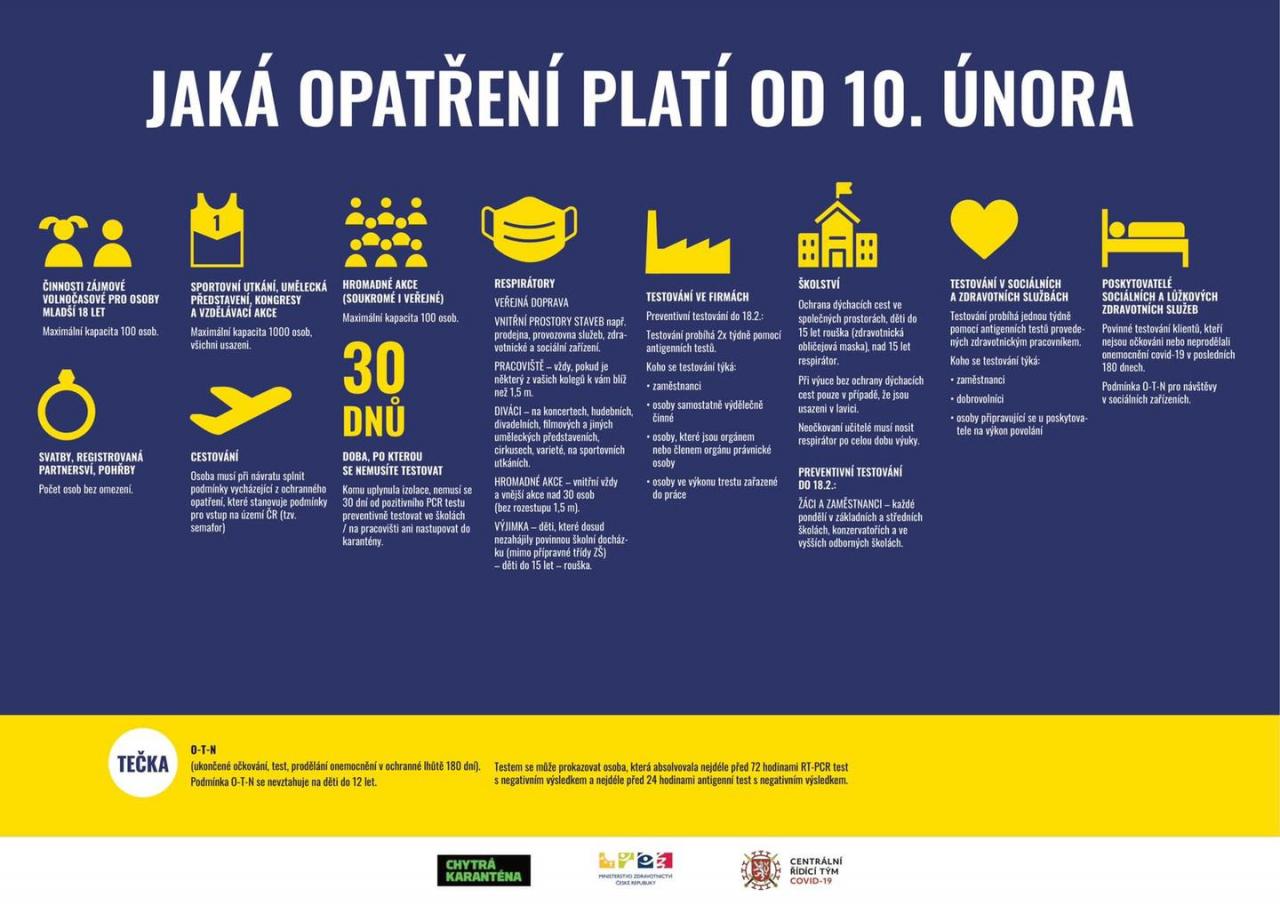 Třídní schůzky a akce pro veřejnost: Pořádání třídních schůzek, dnů otevřených dveří či jiných akcí pořádaných pro veřejnost nejsou podmíněny dokládáním OTN a tyto činnosti jsou pouze omezeny maximálním počtem 100 (od 19. 2. počtem 500) účastníků, jak je tomu doposud.