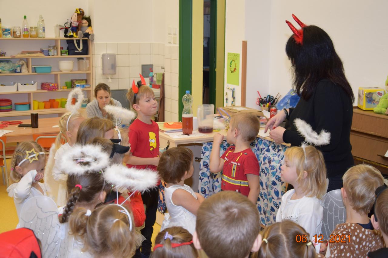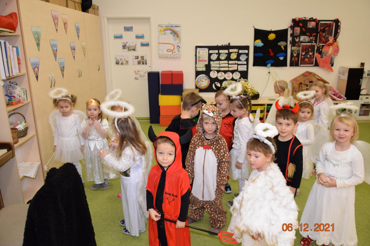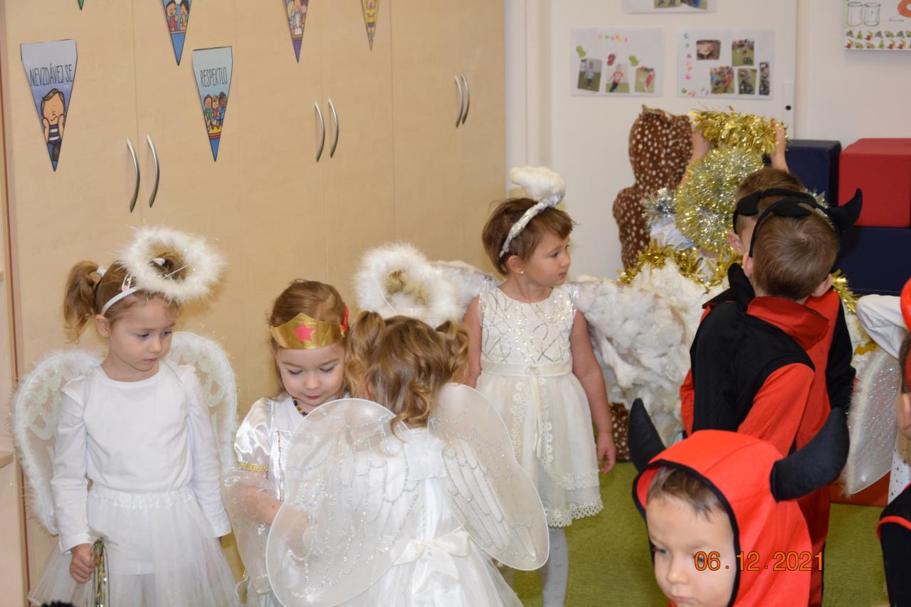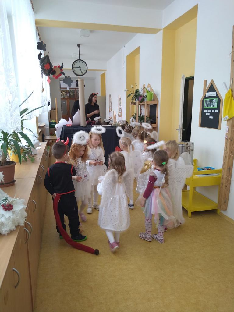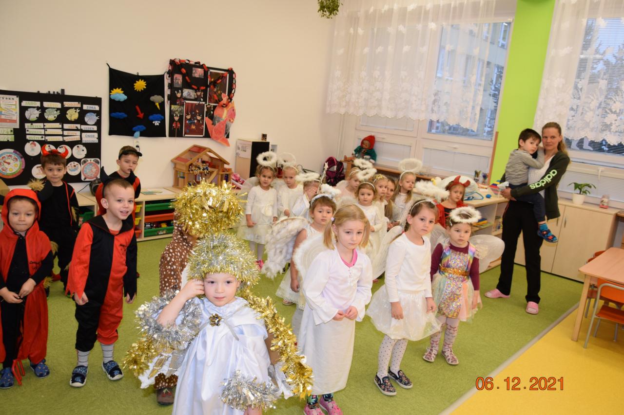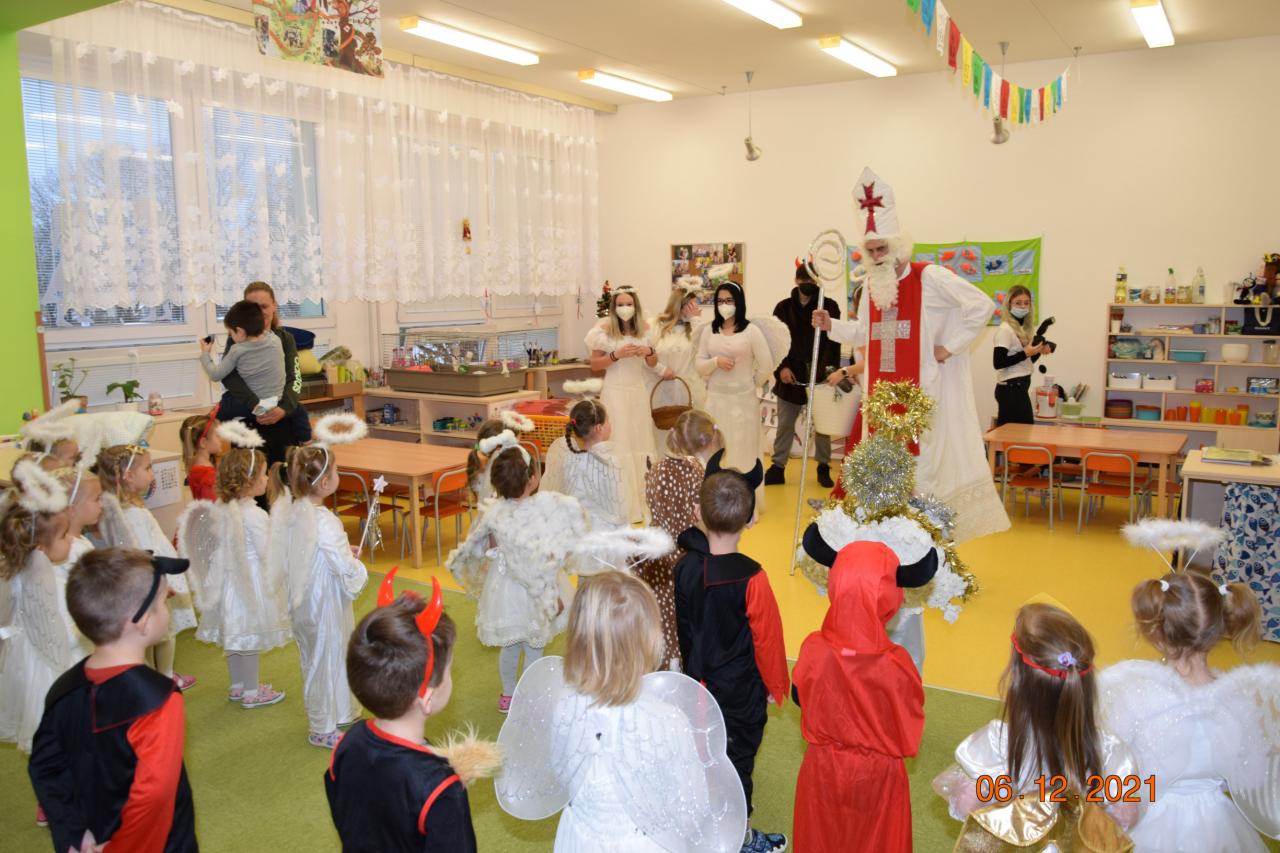 V pondělí 6. prosince 2021 naši mateřskou školu navštívili vzácní hosté. Všechny děti byly velmi statečné a Mikuláši, andělovi i čertům zazpívaly i zarecitovaly. Jako odměnu děti dostaly balíčky plné překvapení. Hned poté se děti vydaly na čertovskou stezku, plnily úkoly, za splnění dostaly klíč k heslu, které je zavedlo až k andílkovi. Všechny děti si to pořádně užily a už teď se těší na vánoční posezení s pohádkou…