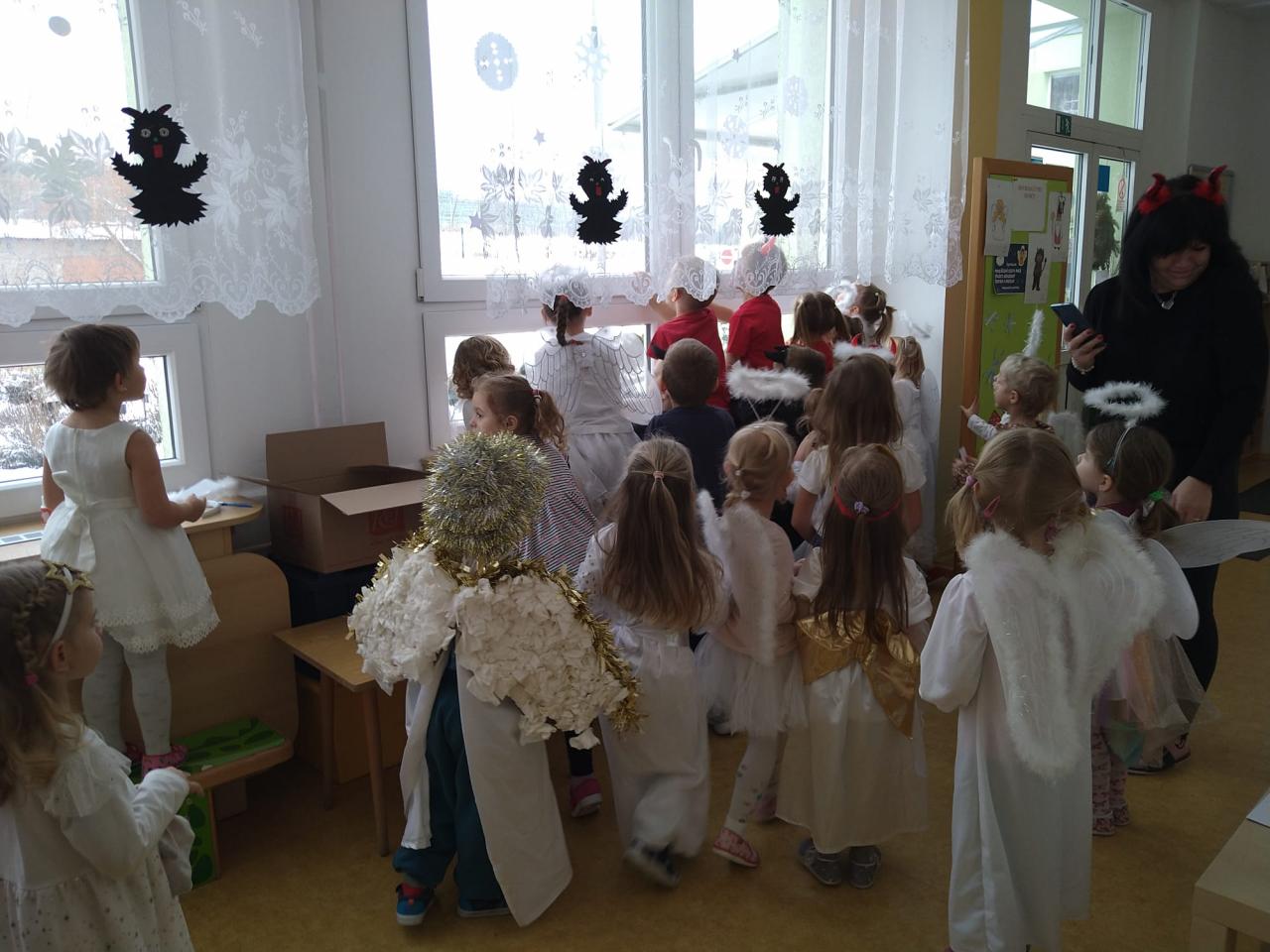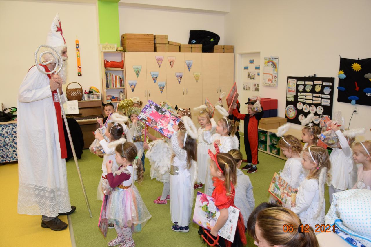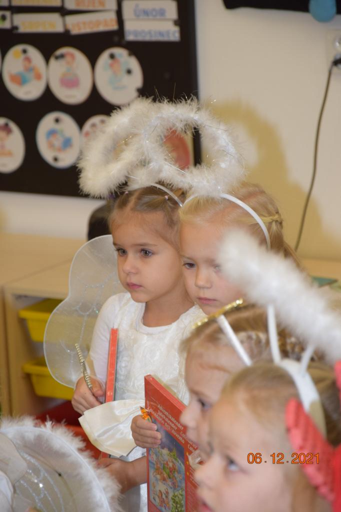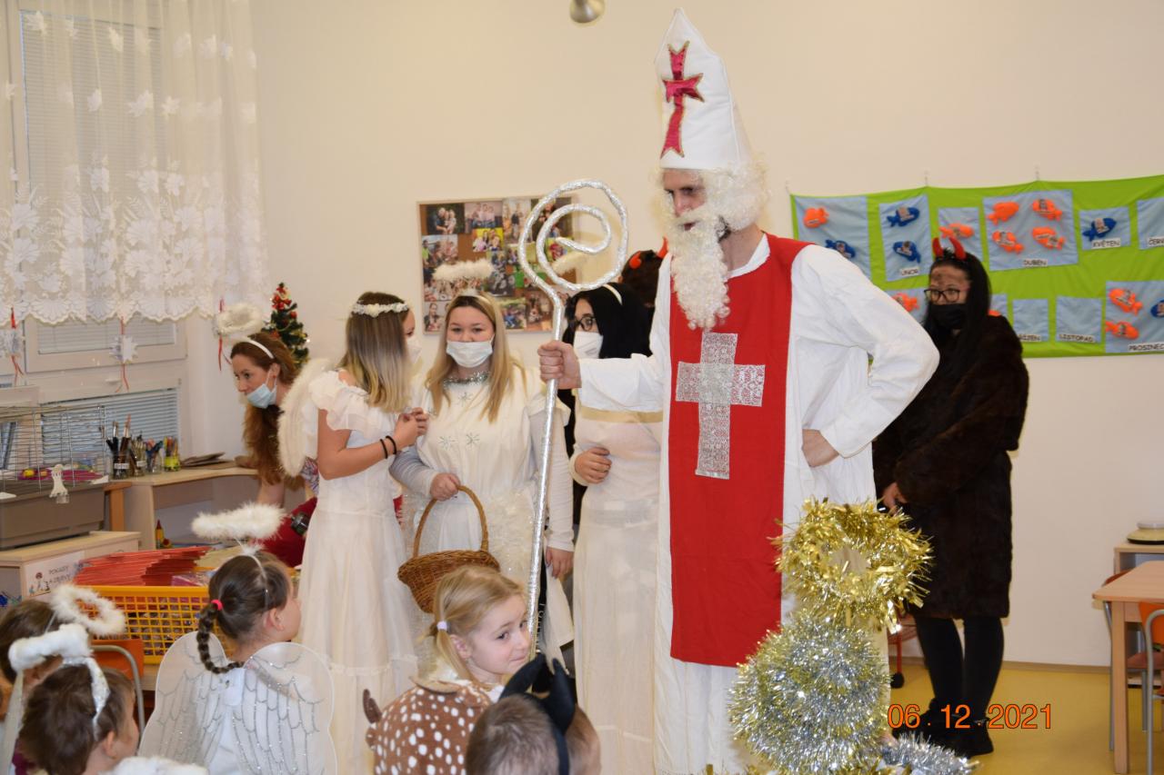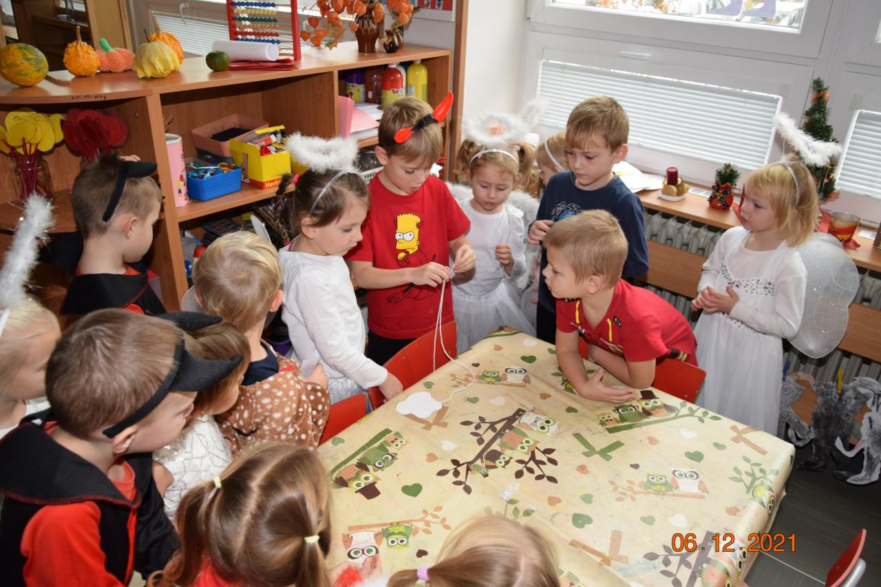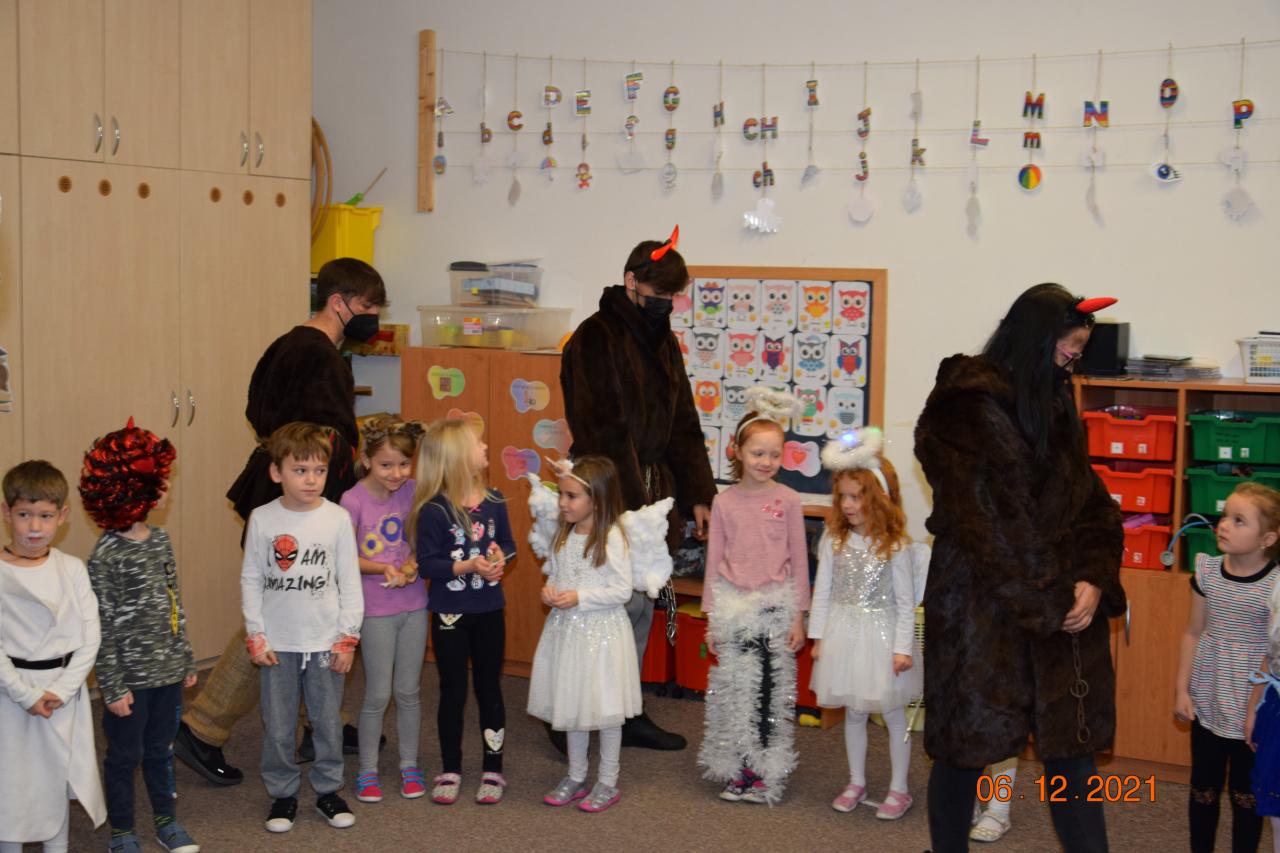 V pondělí 6. prosince 2021 naši mateřskou školu navštívili vzácní hosté. Všechny děti byly velmi statečné a Mikuláši, andělovi i čertům zazpívaly i zarecitovaly. Jako odměnu děti dostaly balíčky plné překvapení. Hned poté se děti vydaly na čertovskou stezku, plnily úkoly, za splnění dostaly klíč k heslu, které je zavedlo až k andílkovi. Všechny děti si to pořádně užily a už teď se těší na vánoční posezení s pohádkou…