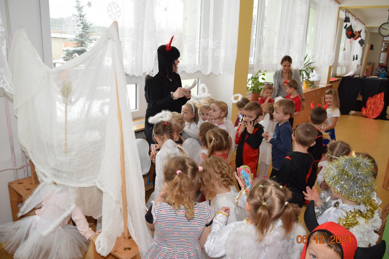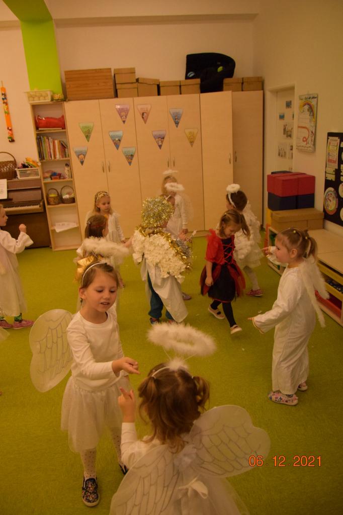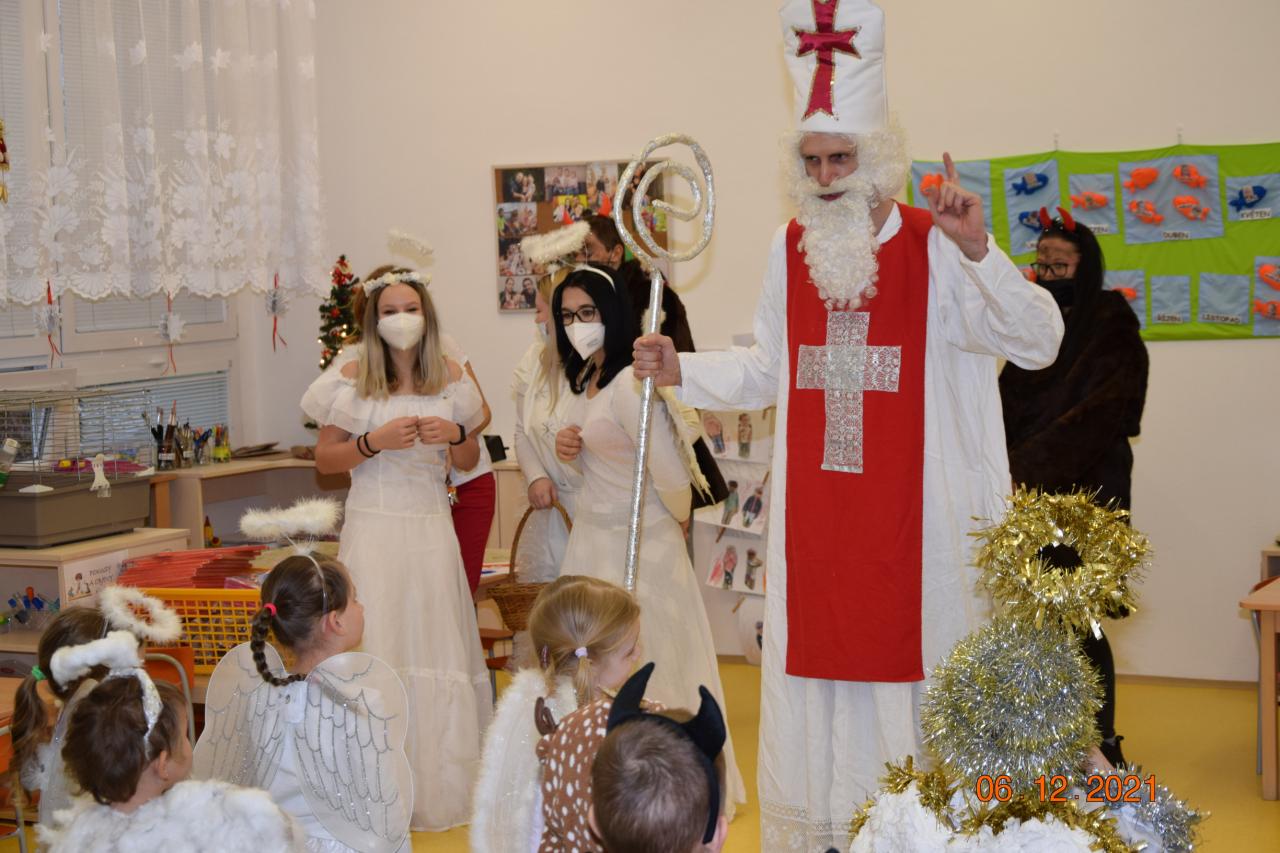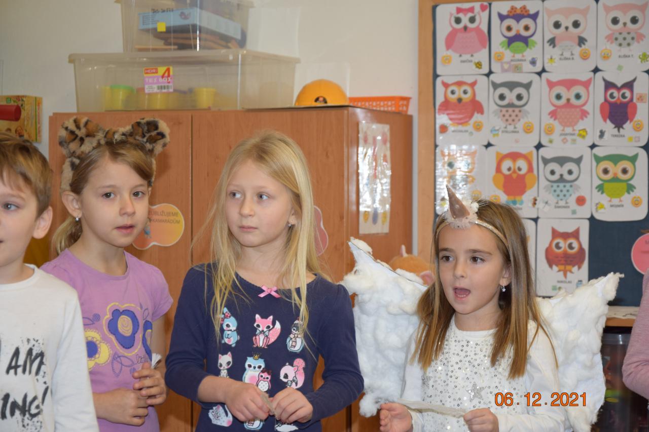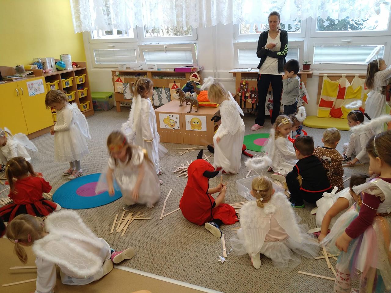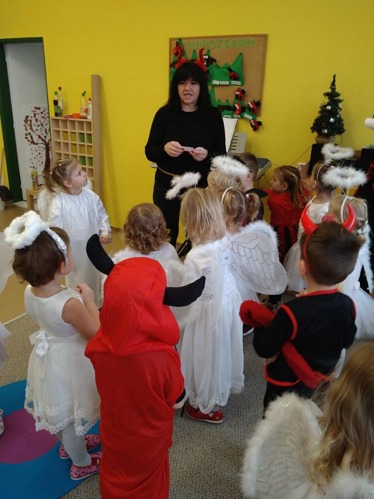 V pondělí 6. prosince 2021 naši mateřskou školu navštívili vzácní hosté. Všechny děti byly velmi statečné a Mikuláši, andělovi i čertům zazpívaly i zarecitovaly. Jako odměnu děti dostaly balíčky plné překvapení. Hned poté se děti vydaly na čertovskou stezku, plnily úkoly, za splnění dostaly klíč k heslu, které je zavedlo až k andílkovi. Všechny děti si to pořádně užily a už teď se těší na vánoční posezení s pohádkou…