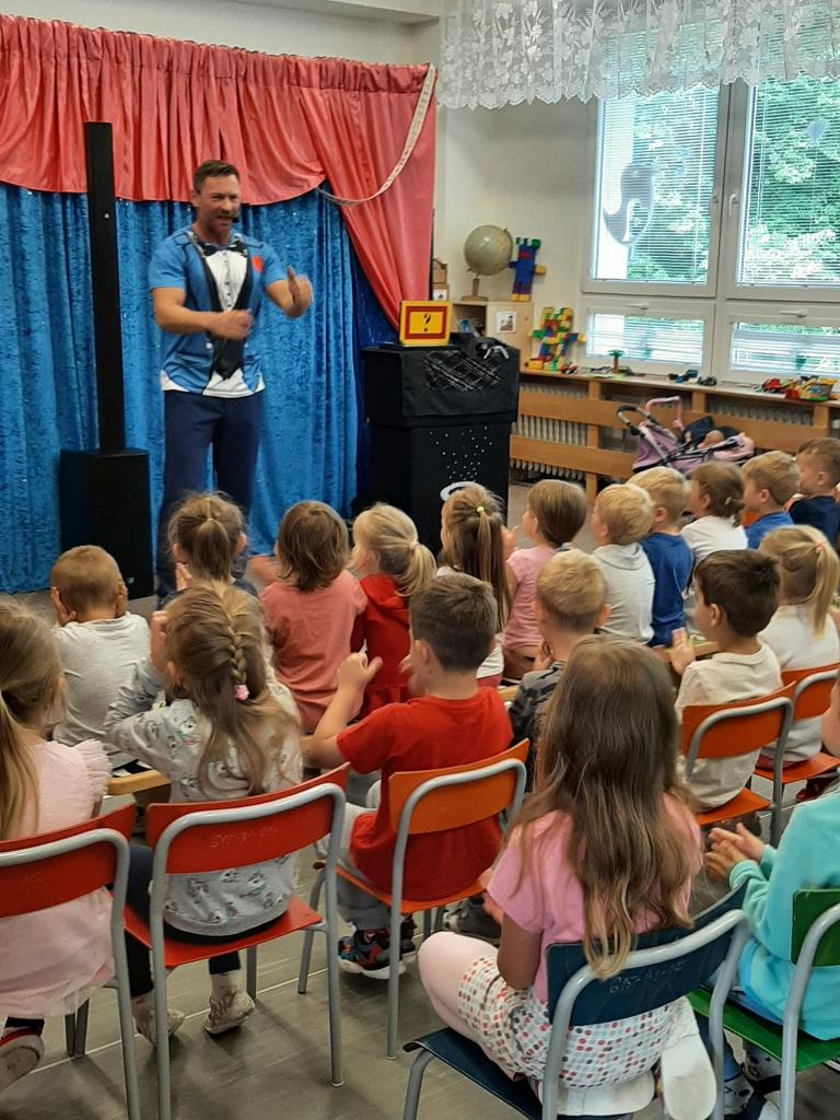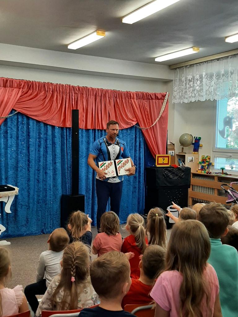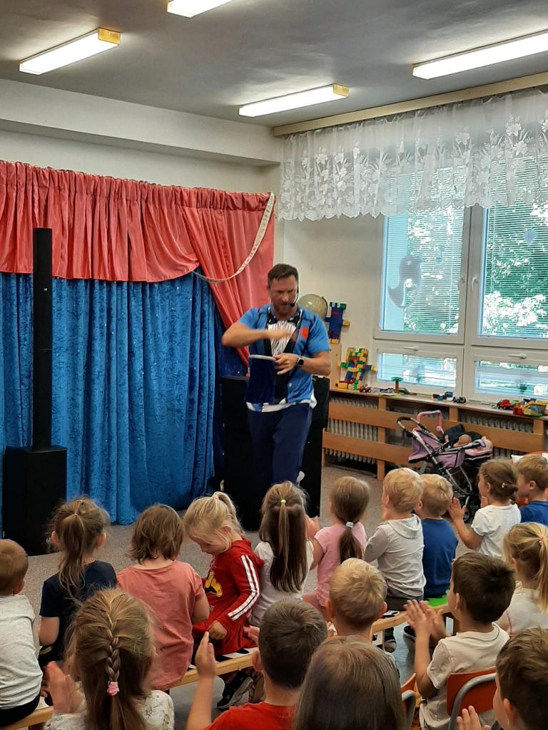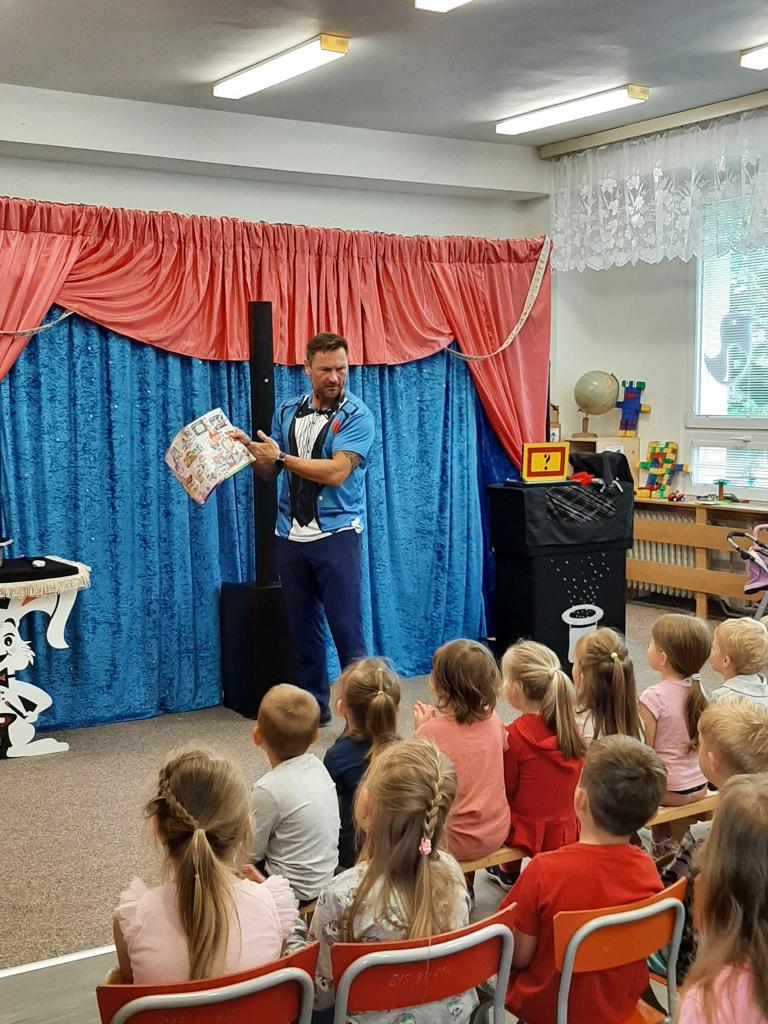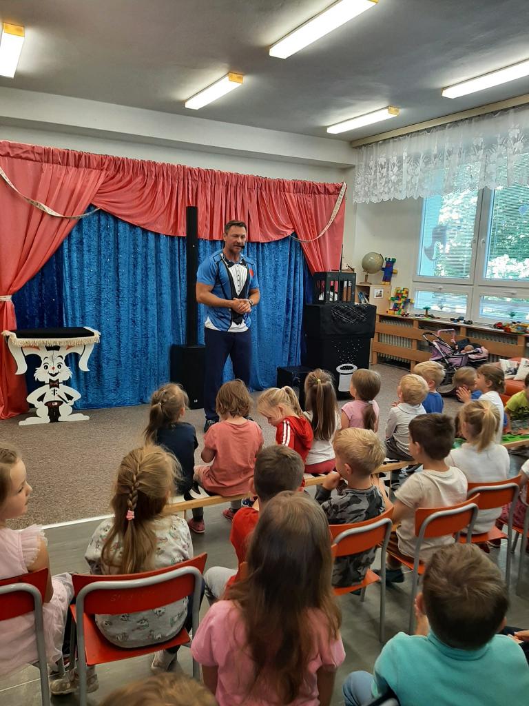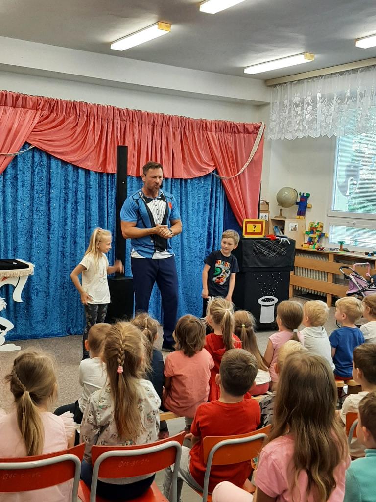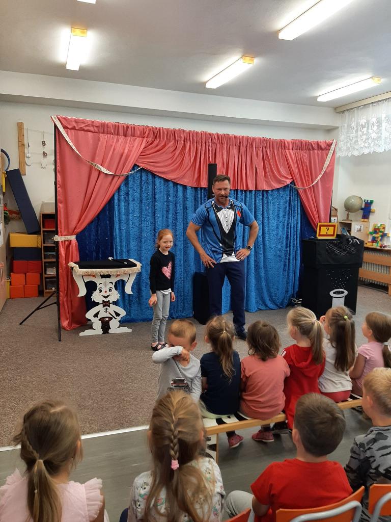 Ve čtvrtek 26. května 2022 do naší MŠ zavítal se svým programem Stanislav Šindelář alias kouzelník Reno. Děti byly do kouzelnických efektů zapojováni jako asistenti, pobavily se, protože celý program byl vystavěn vtipnou formou. Byly nuceni přemýšlet, počítat a tím byla jejich pozornost lehce udržena po celou dobu akce. Spousta efektů byla propojena hudbou a tancem. Celá show byla zakončena objevením živého králíka, kterého si mohl každý i pohladit.