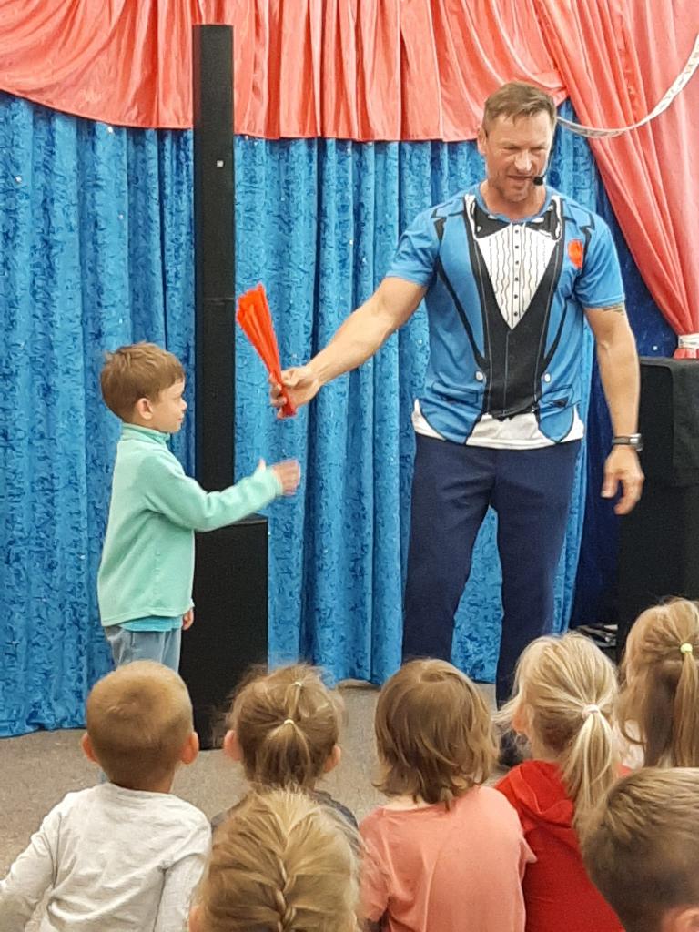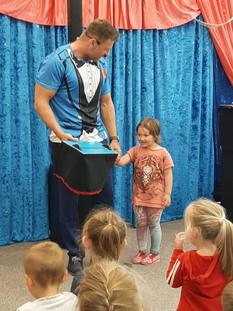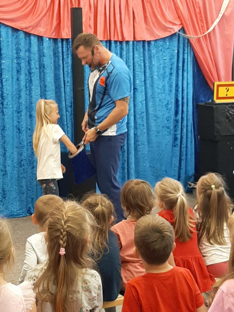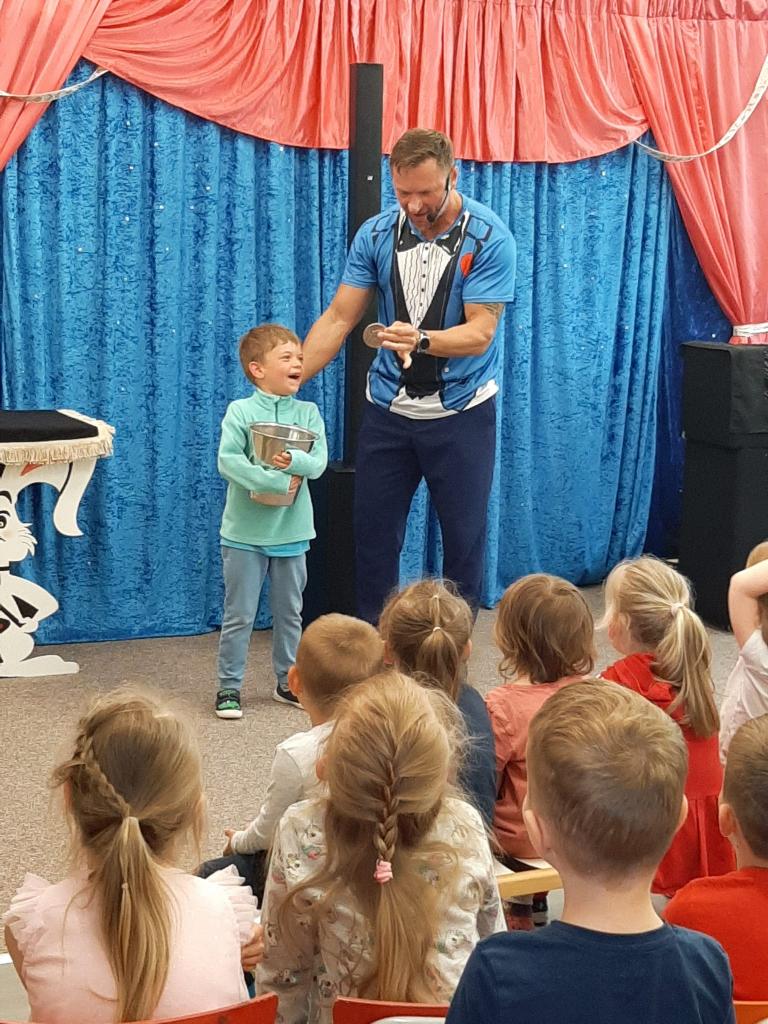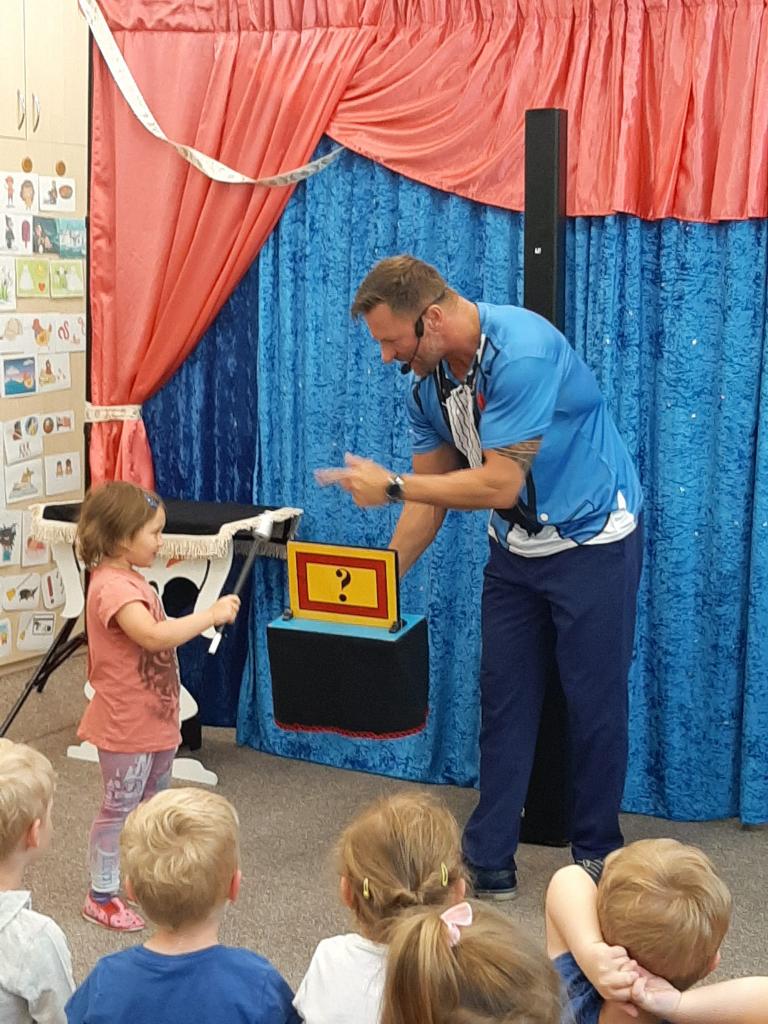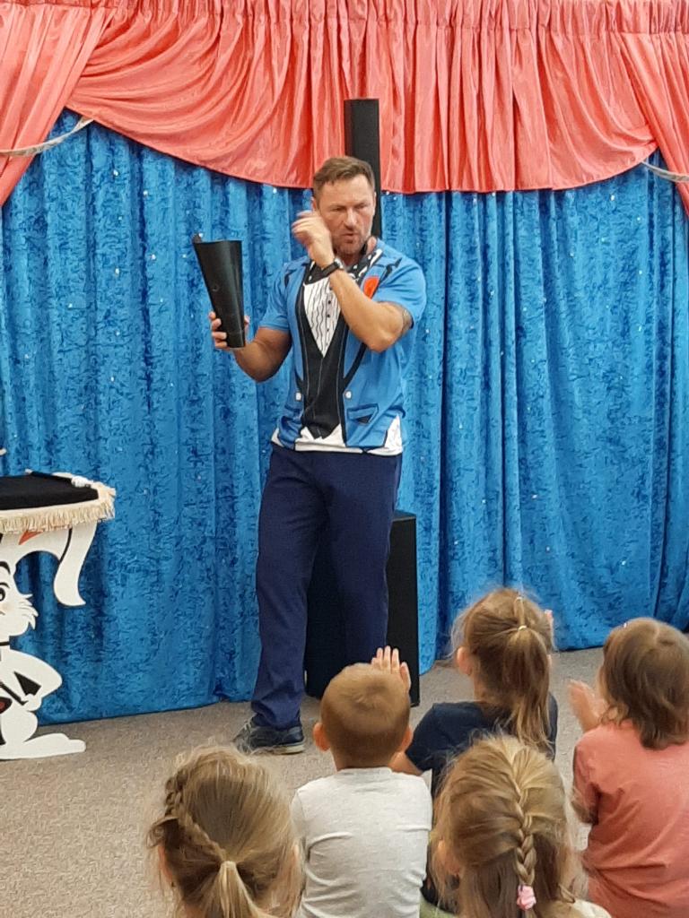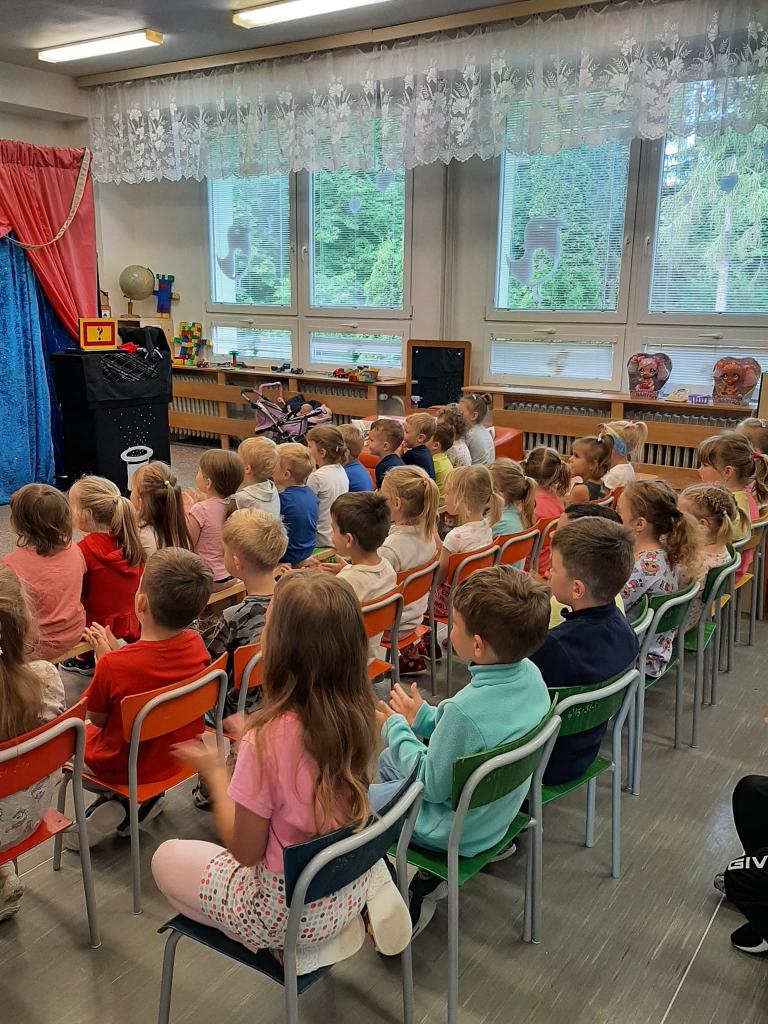Ve čtvrtek 26. května 2022 do naší MŠ zavítal se svým programem Stanislav Šindelář alias kouzelník Reno. Děti byly do kouzelnických efektů zapojováni jako asistenti, pobavily se, protože celý program byl vystavěn vtipnou formou. Byly nuceni přemýšlet, počítat a tím byla jejich pozornost lehce udržena po celou dobu akce. Spousta efektů byla propojena hudbou a tancem. Celá show byla zakončena objevením živého králíka, kterého si mohl každý i pohladit.