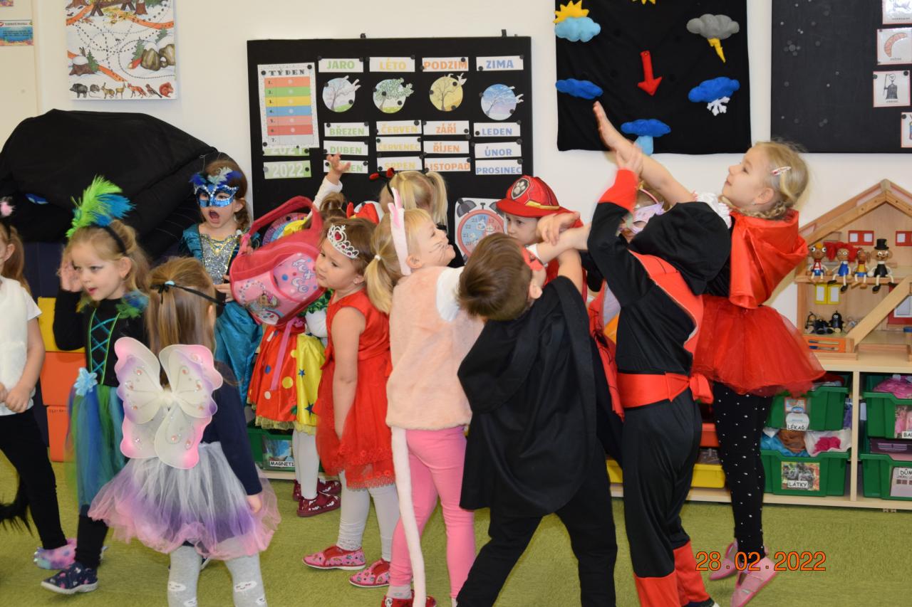 V naší mateřské škole jsme 28. února 2022 oslavili Masopust. Celý předešlý týden jsme si povídali o masopustu, karnevalu a tradicích s tím spojených. Nechyběla ani výroba masek či masopustních pokrmů.