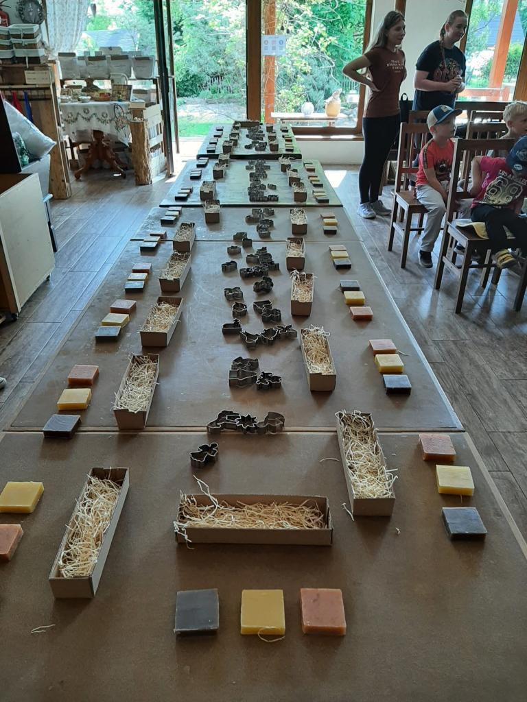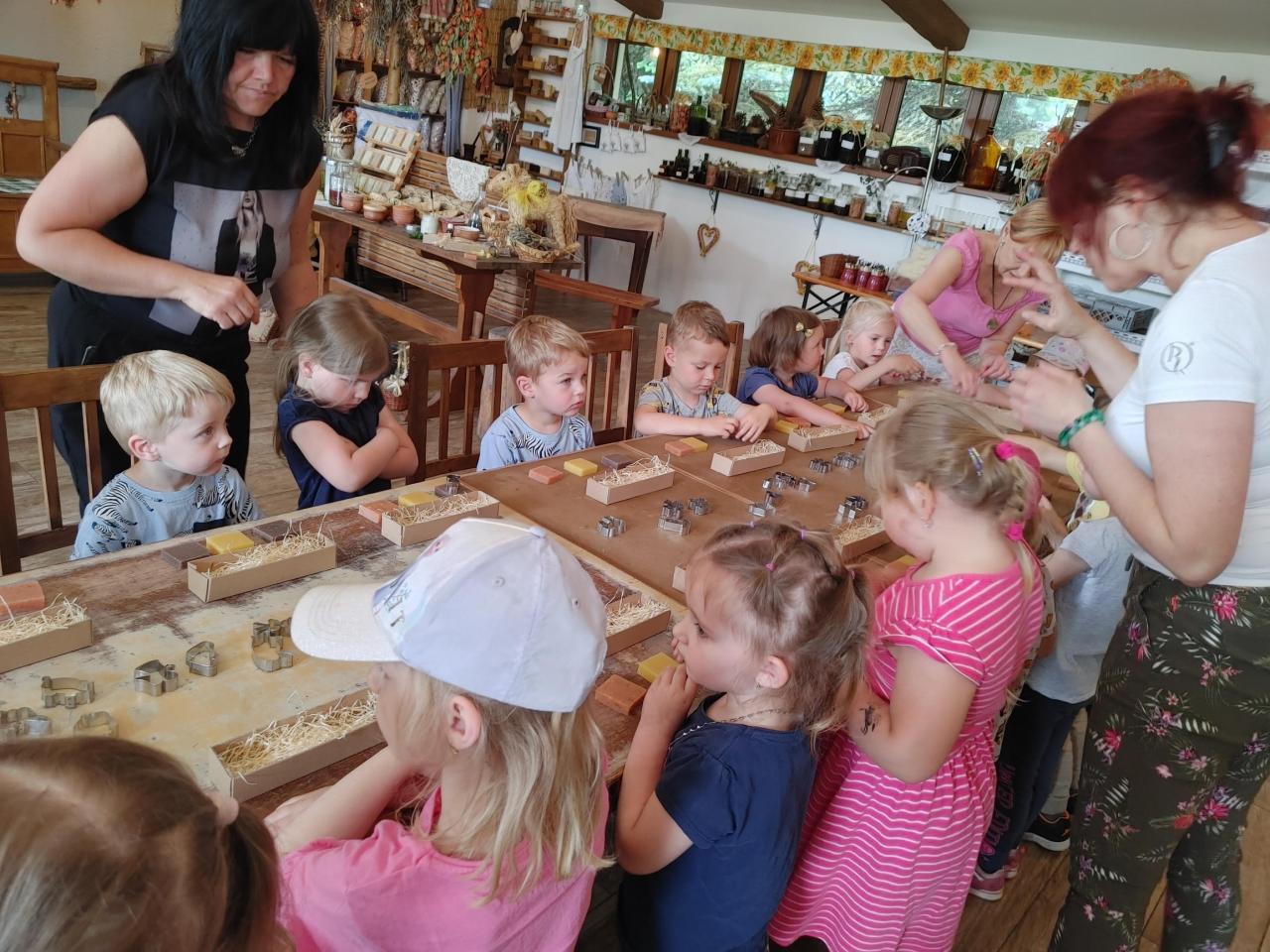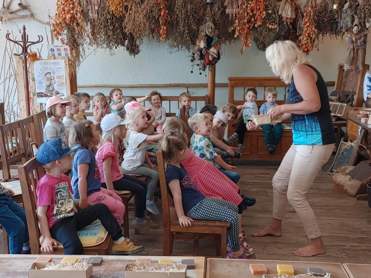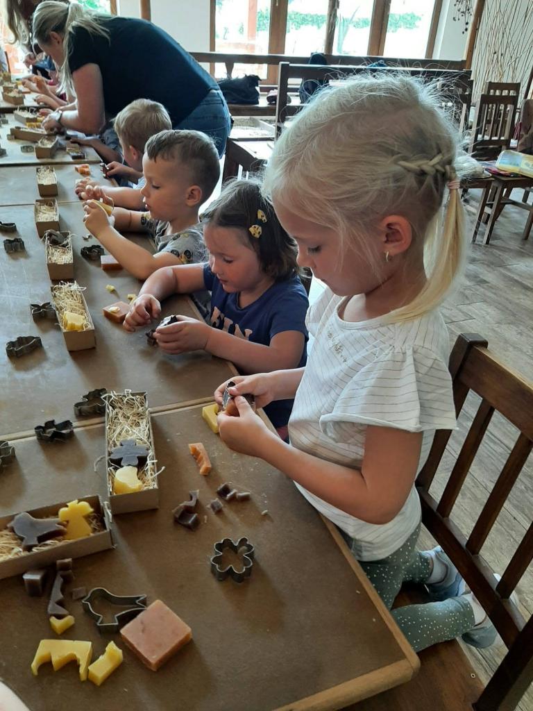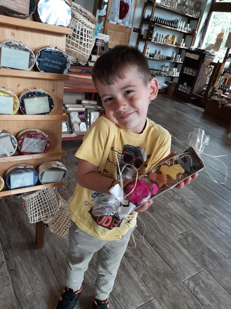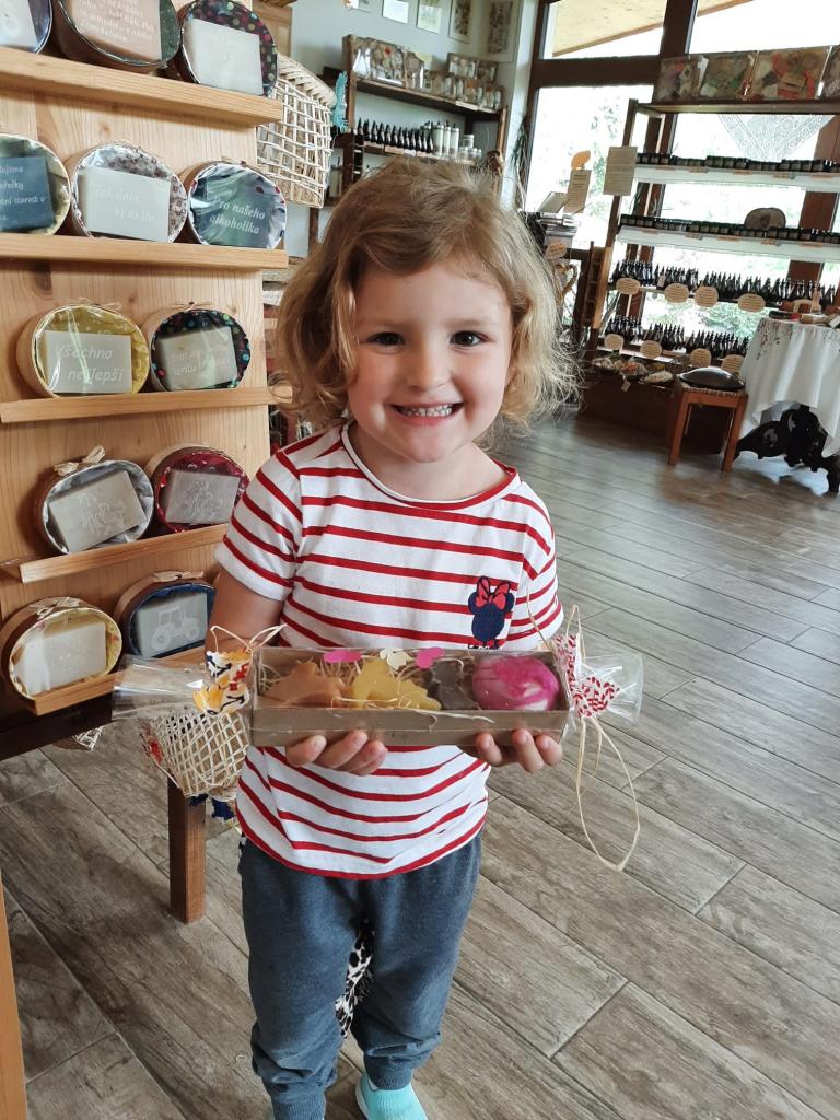 Dne 24. 5. 2022 jsme navštívili MÝDLÁRNU RUBENS v Růžové u Děčína v rámci projektového dne, kde se vyrábí mýdla pouze ze 100% přírodních látek s bylinkami. Děti se seznámily s historií výroby mýdel a s jeho postupy. Pomocí vykrajovátek a plstění si vyrobily mýdlo, které poté vložily do krabičky a nazdobily si ho. Venku jsme si prohlédli bylinkovou zahrádku a byli jsme seznámeni s bylinkami a jejich účinky. Děti nakonec zapojily své smysly a prošly chodník naboso. Pro některé děti byla cesta autobusem premiéra a chtěly si užít výlet do konce, bohužel při zpáteční cestě některé přepadl spánek :-)