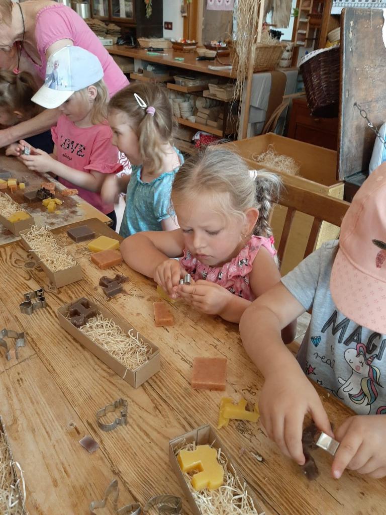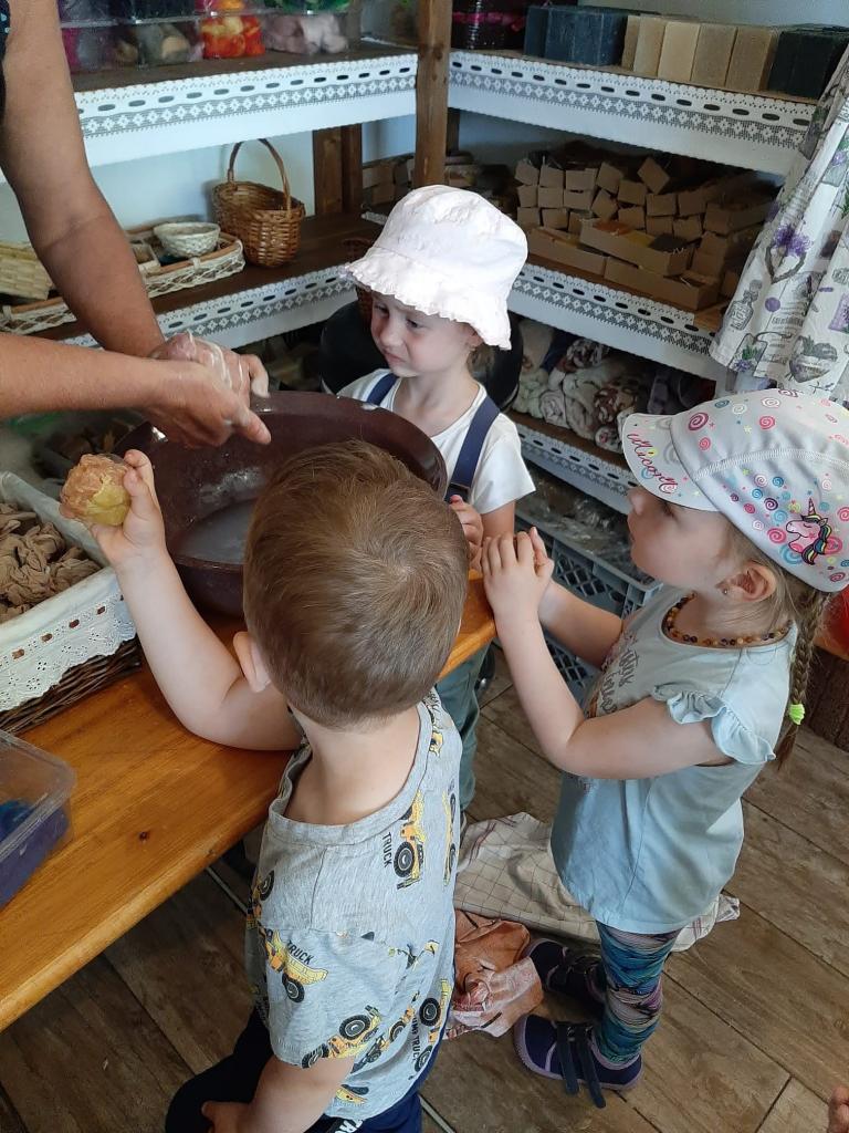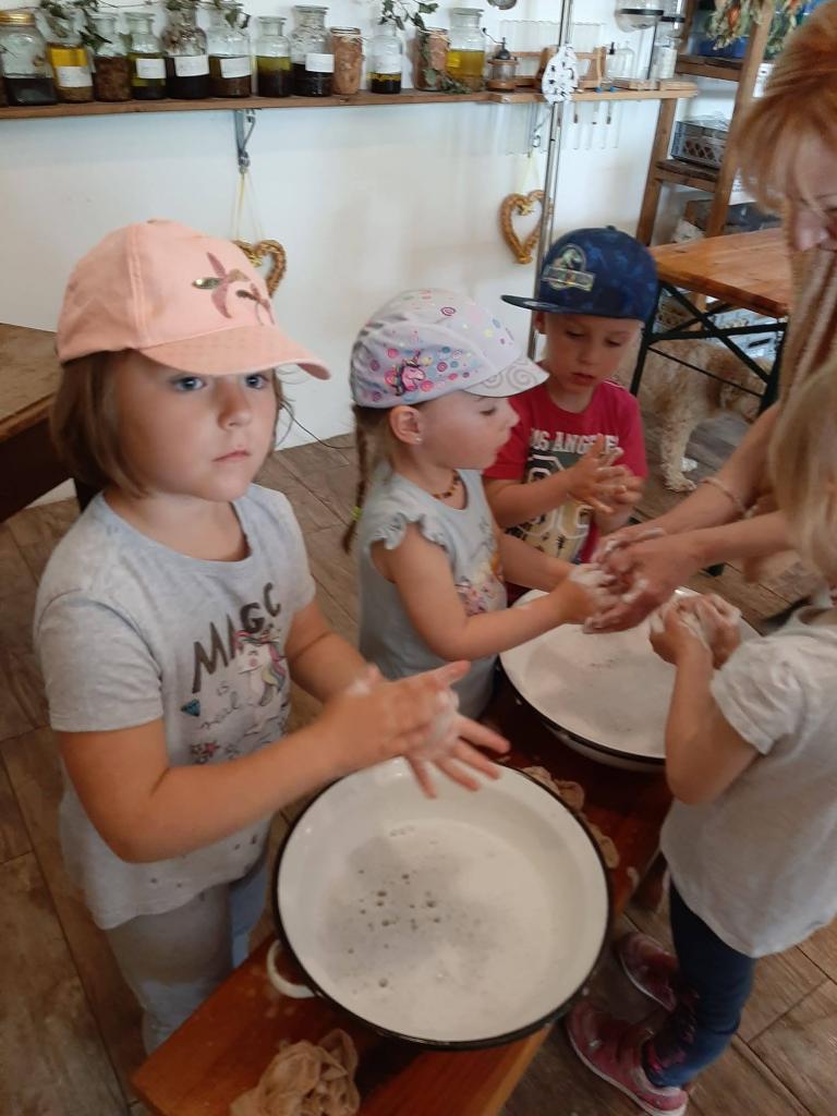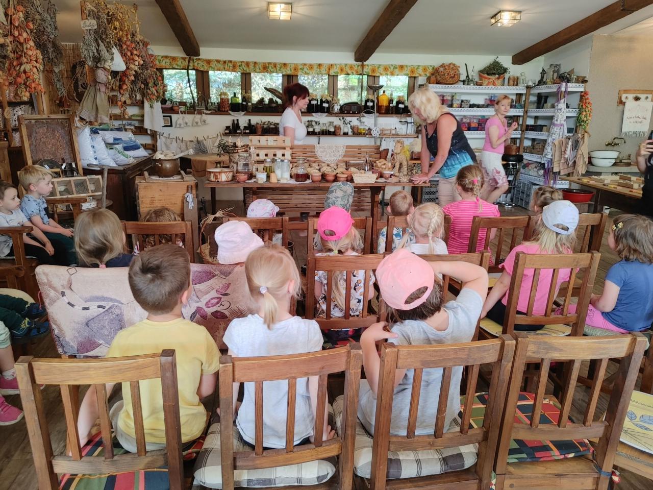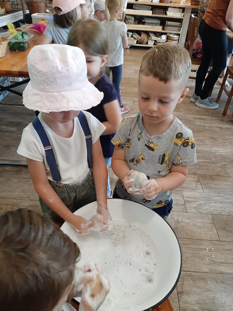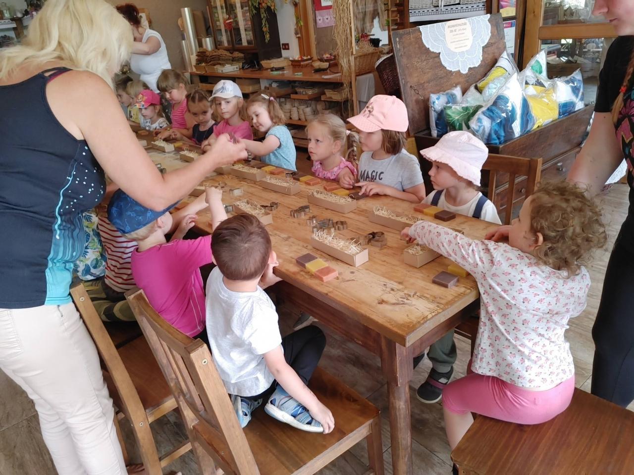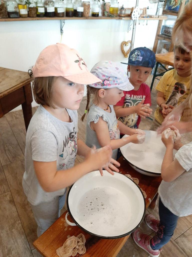 Dne 24. 5. 2022 jsme navštívili MÝDLÁRNU RUBENS v Růžové u Děčína v rámci projektového dne, kde se vyrábí mýdla pouze ze 100% přírodních látek s bylinkami. Děti se seznámily s historií výroby mýdel a s jeho postupy. Pomocí vykrajovátek a plstění si vyrobily mýdlo, které poté vložily do krabičky a nazdobily si ho. Venku jsme si prohlédli bylinkovou zahrádku a byli jsme seznámeni s bylinkami a jejich účinky. Děti nakonec zapojily své smysly a prošly chodník naboso. Pro některé děti byla cesta autobusem premiéra a chtěly si užít výlet do konce, bohužel při zpáteční cestě některé přepadl spánek :-)