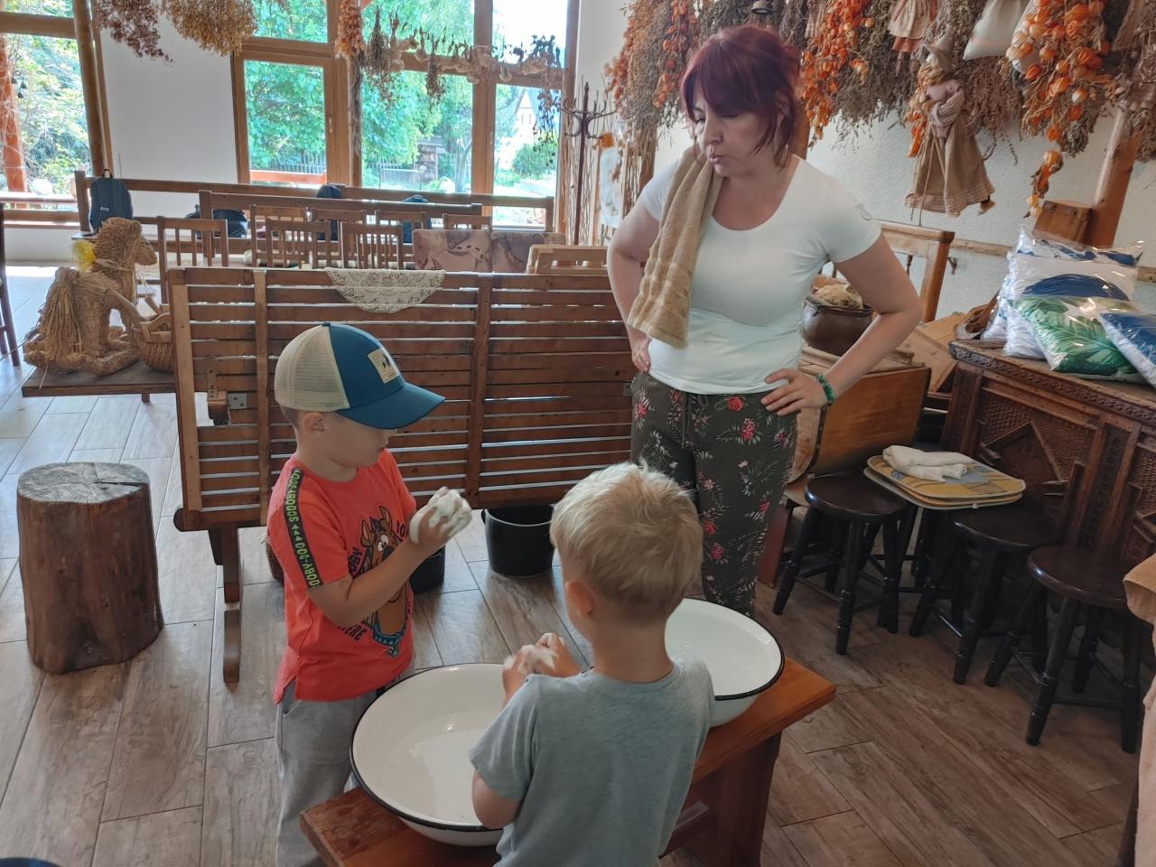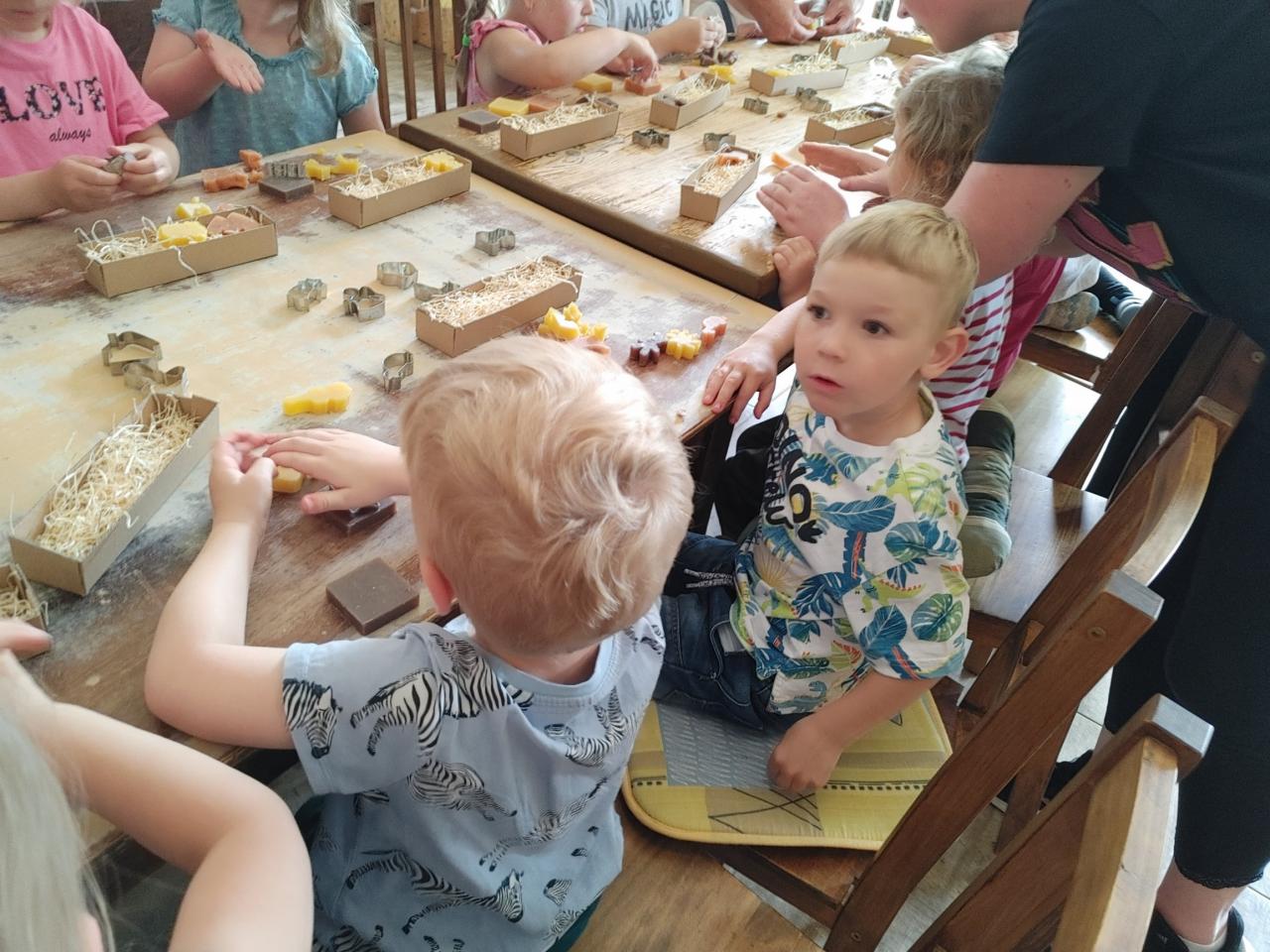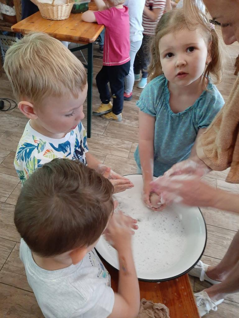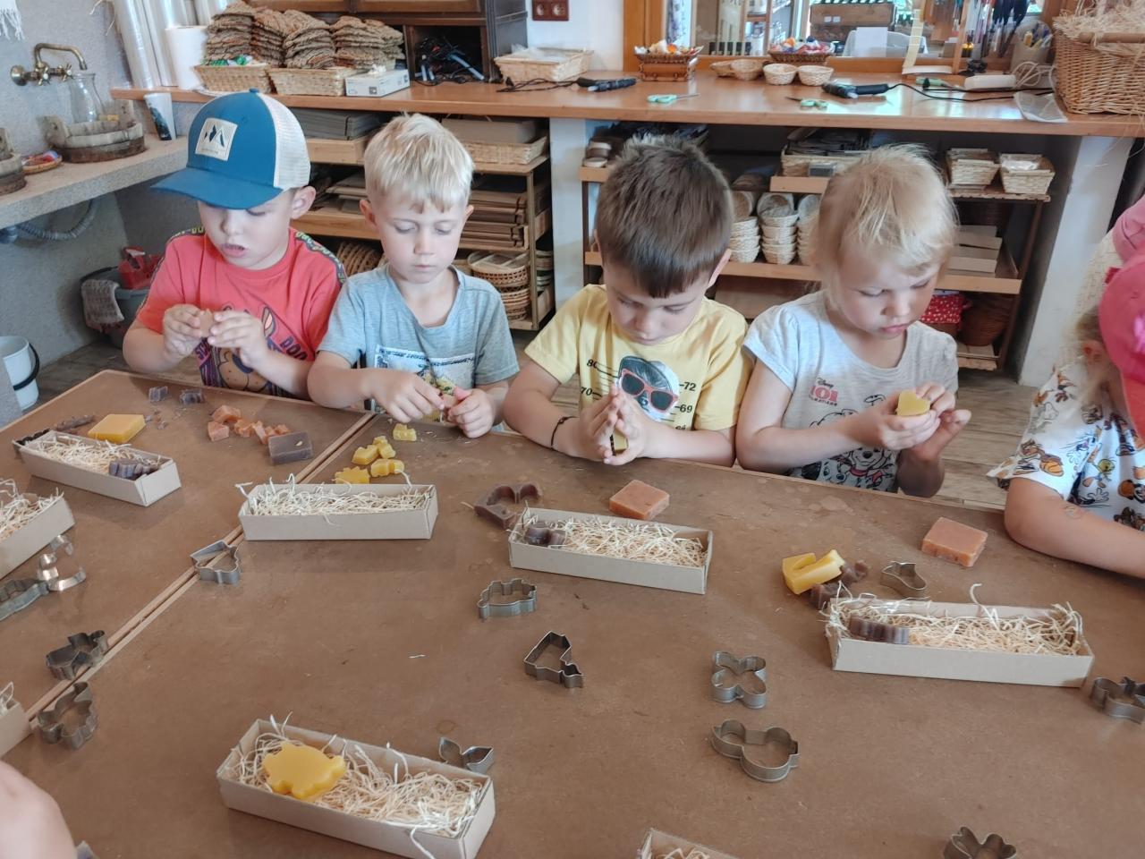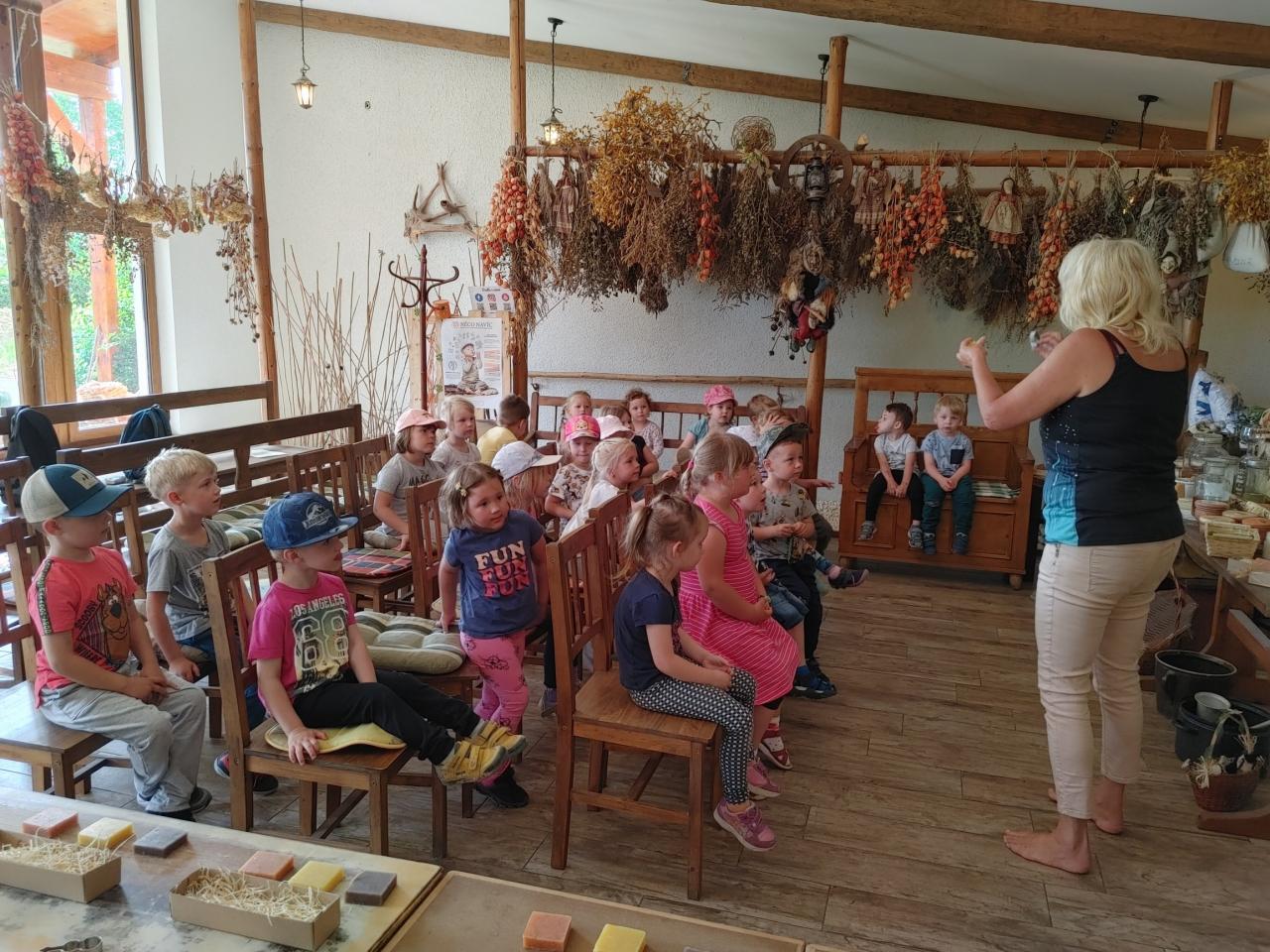 Dne 24. 5. 2022 jsme navštívili MÝDLÁRNU RUBENS v Růžové u Děčína v rámci projektového dne, kde se vyrábí mýdla pouze ze 100% přírodních látek s bylinkami. Děti se seznámily s historií výroby mýdel a s jeho postupy. Pomocí vykrajovátek a plstění si vyrobily mýdlo, které poté vložily do krabičky a nazdobily si ho. Venku jsme si prohlédli bylinkovou zahrádku a byli jsme seznámeni s bylinkami a jejich účinky. Děti nakonec zapojily své smysly a prošly chodník naboso. Pro některé děti byla cesta autobusem premiéra a chtěly si užít výlet do konce, bohužel při zpáteční cestě některé přepadl spánek :-)
