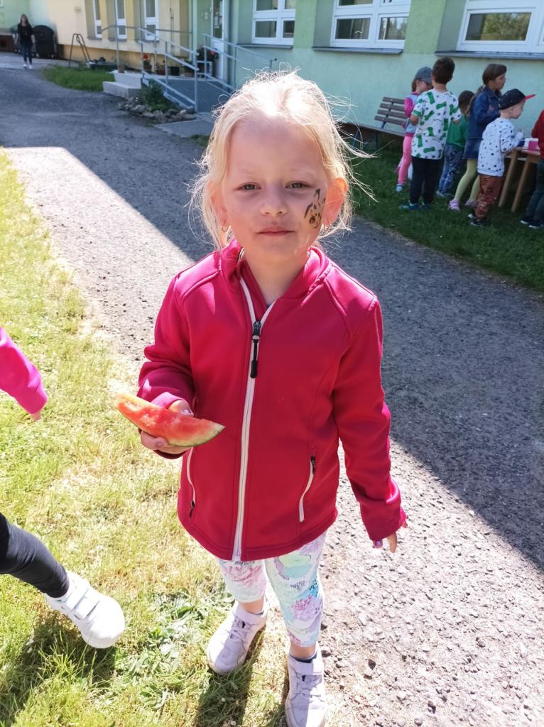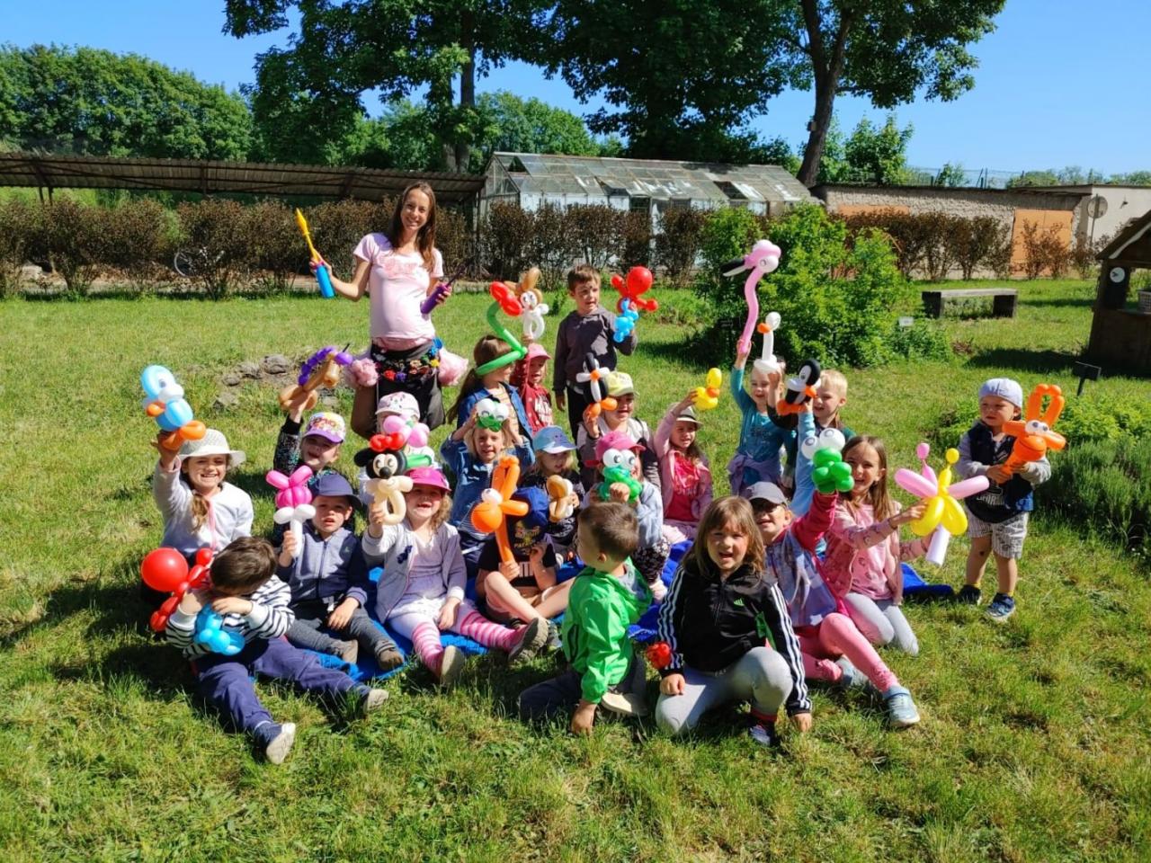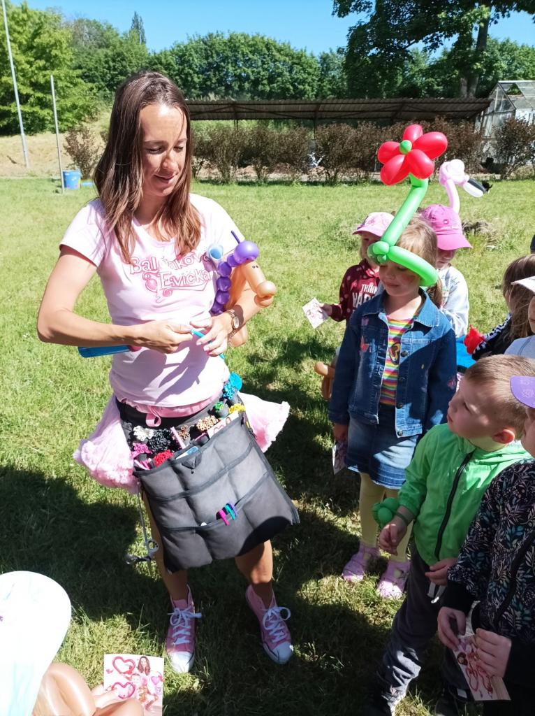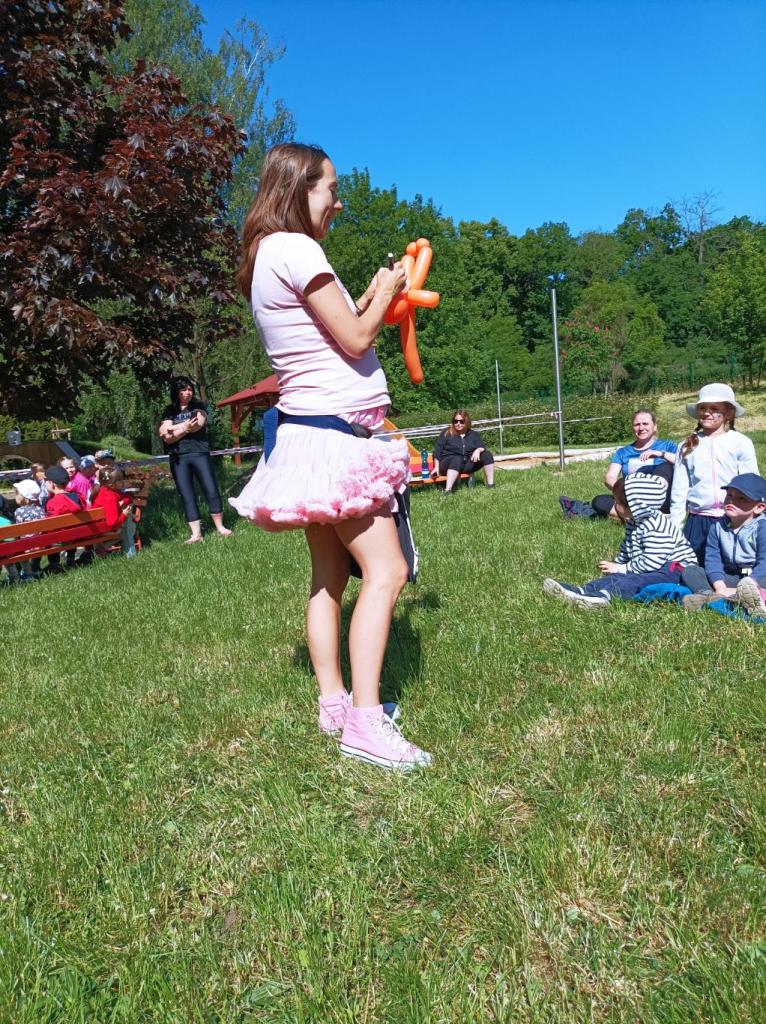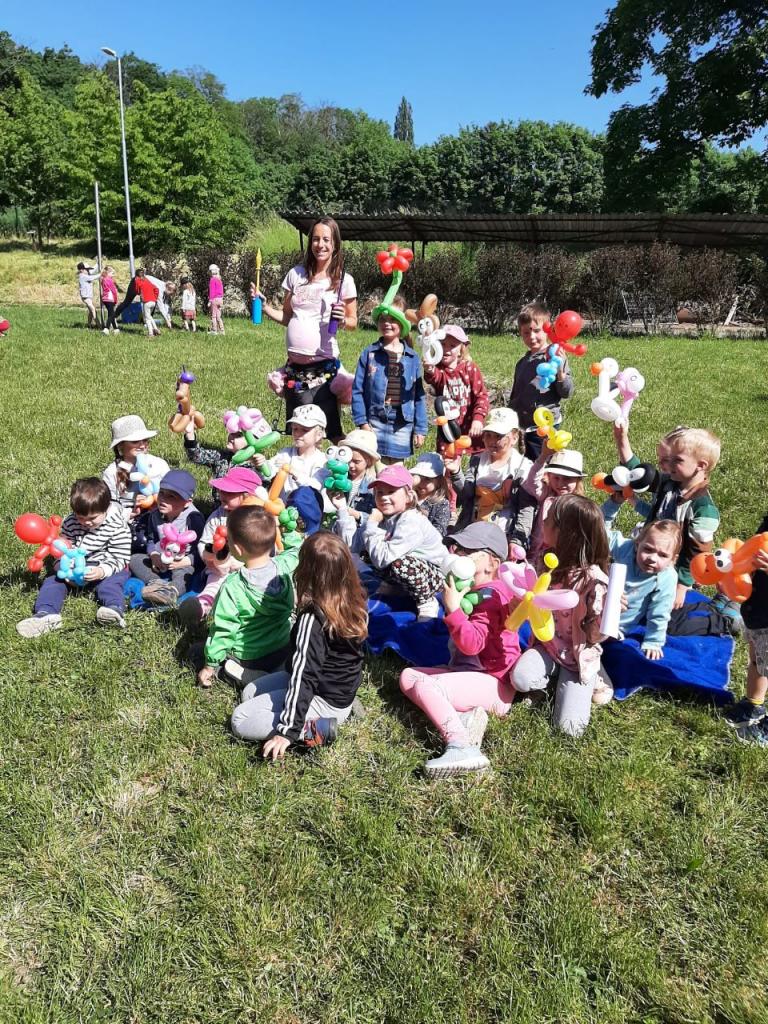 V úterý 30. května 2023 jsme s dětmi slavili na zahradě MŠ „Dětský den“. Navštívila nás BALÓNKOVÁ EVIČKA se svým jedinečným a originálním programem, který byl plný zvířátek, kytiček a pohádkových postav vytvořených z barevných balónků na přání dětí. Každý si po představení domů odnesl na památku krásný balónkový výtvor a především úsměv na tváři. Děti také plnily úkoly, vyzkoušely si např. jak létá včelka do úlu, hledaly pavoučky v pavučině, porovnávaly berušky. Na děti také čekalo překvapení v podobě malování na obličej. Nechybělo ani pohoštění, které děti připravily doma s rodiči. Společně jsme si tento den parádně užili.