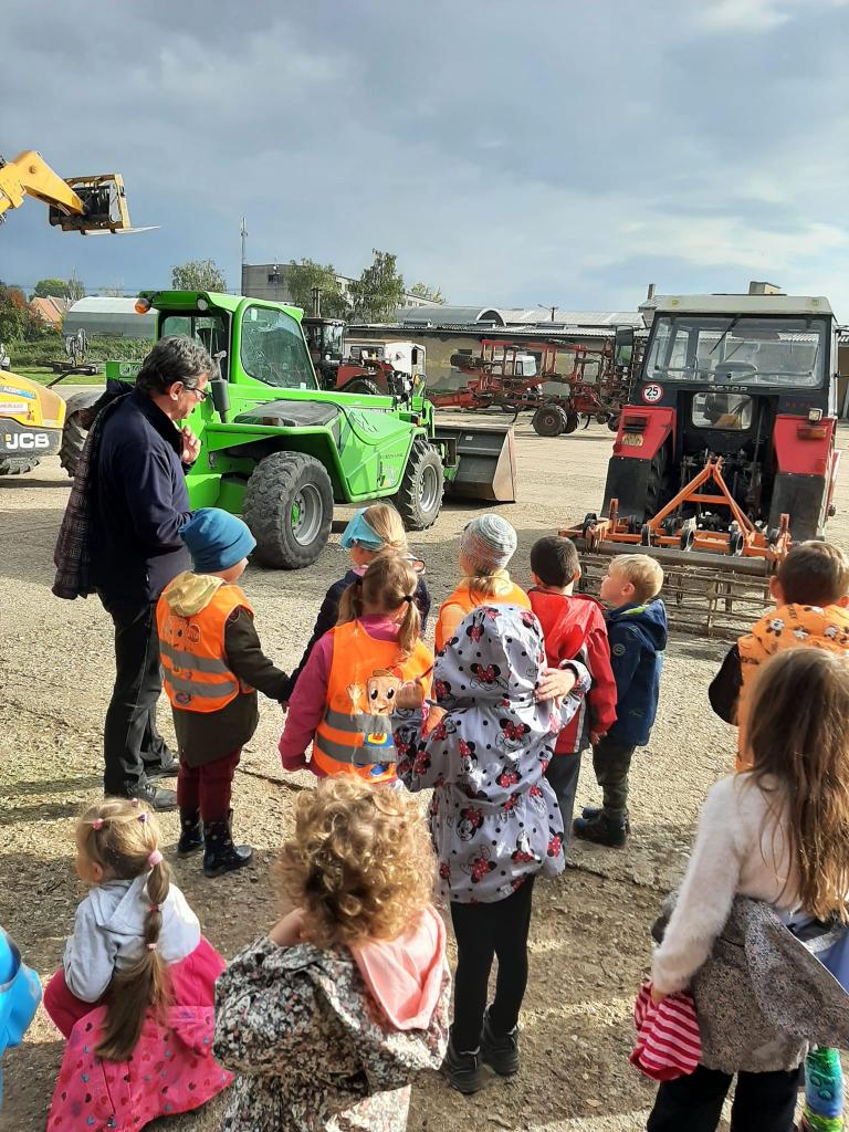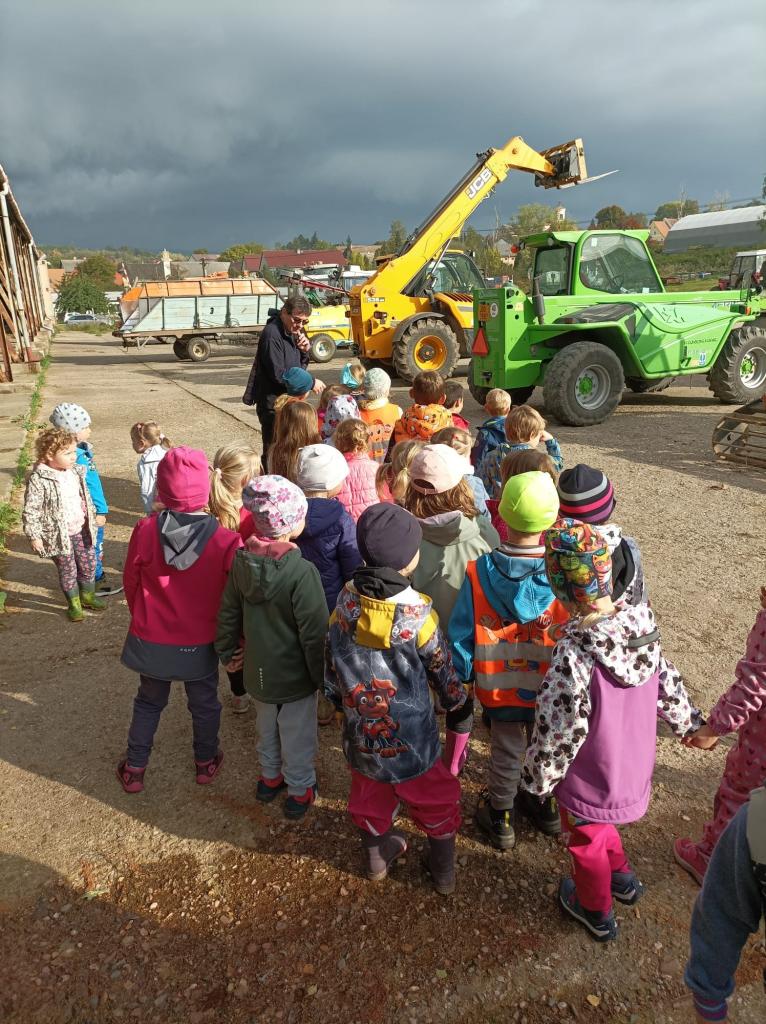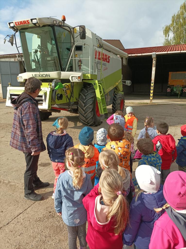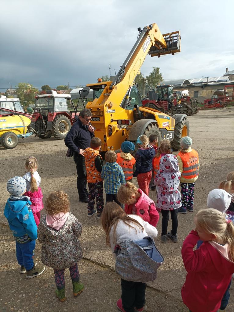 Ve čtvrtek 6. října 2022 se děti ze tříd Sovičky a Rybičky zúčastnily exkurze do ZD Liběšice, která korespondovala s tématy podzimního vzdělávacího bloku. Děti se dozvěděly, jaké stroje zemědělcům pomáhají při práci na poli i v sadu a viděly novou češačku chmele za 12 000 000 Kč, která je v současné době chloubou družstva. Zjistili jsme, jaké plodiny družstvo pěstuje na poli i v soběnickém sadu a děti si ujasnily, co je zelenina a ovoce. V jednom zemědělském stroji si mohly i posedět a návštěvu jim nezkazila ani krátká dešťová přeháňka. Na konci návštěvy je pracovníci odměnili i sladkým jablíčkem ze sadu. Chceme poděkovat za hezkou a přínosnou exkurzi a těšíme se na další možnost spolupráce.