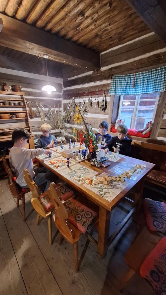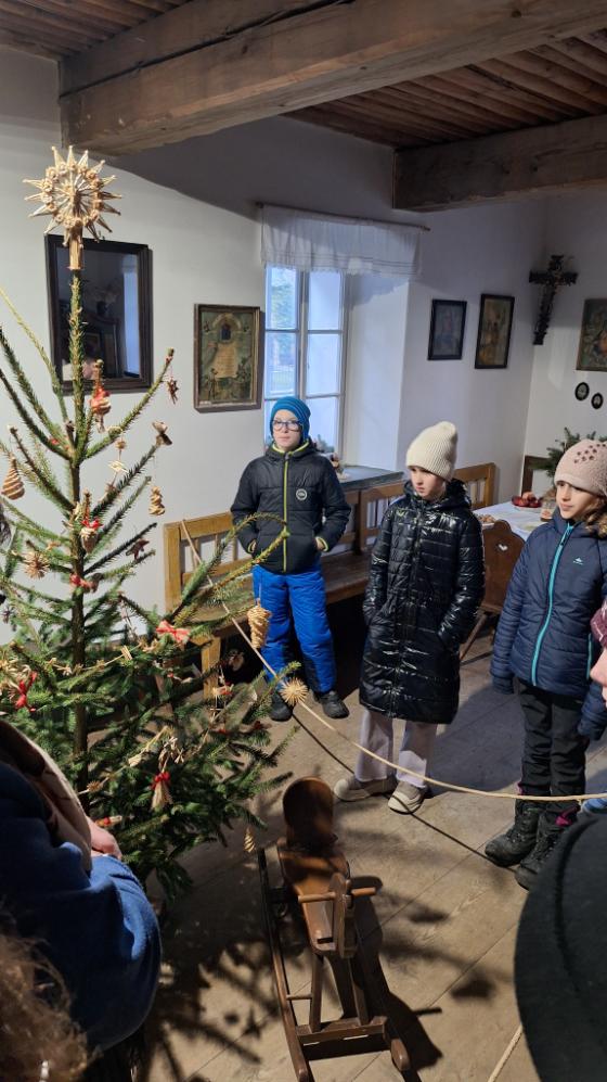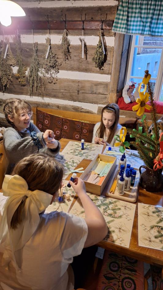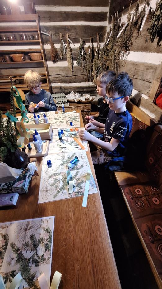 Vánočně vyzdobenou usedlostí provedli děti poutavou formou. Seznámili je s adventními a vánočními zvyky. Při výrobě ozdob děti zapojily své smysly, poslechly si vánoční příběhy a prohlédly sváteční výzdobu. Mohly si přivonět k dobrotám a perníčky co vyrobily si ochutnaly.