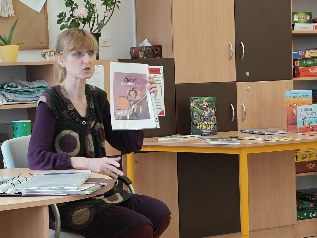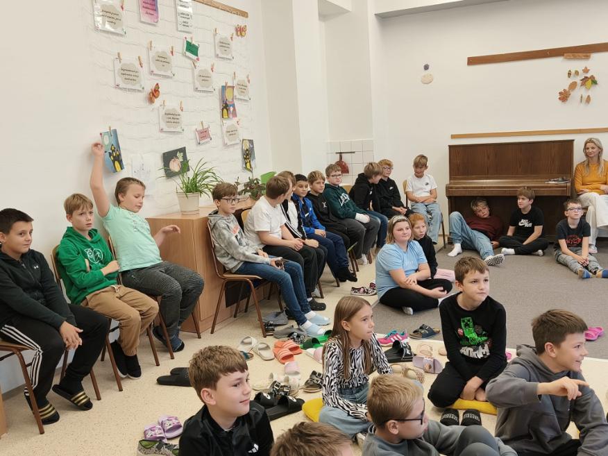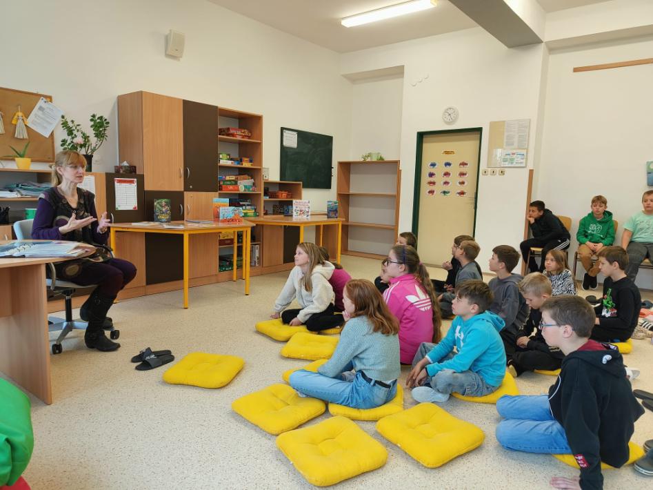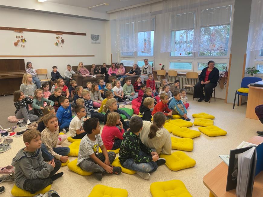 Ve středu 5. listopadu 2025 navštívila naši školu spisovatelka dětských knih Ivona Březinová. Přivezla s sebou na ukázku spoustu svých knih a dozvěděli jsme se, jak se taková kniha píše, jak se tiskne v tiskárně na celé archy, sváže a teprve potom se nařežou jednotlivé stránky. Těm, kteří si od ní knihy objednali, napsala i osobní věnování. Beseda byla velmi poučná a díky tomu jsme zase o trošku chytřejší :).
