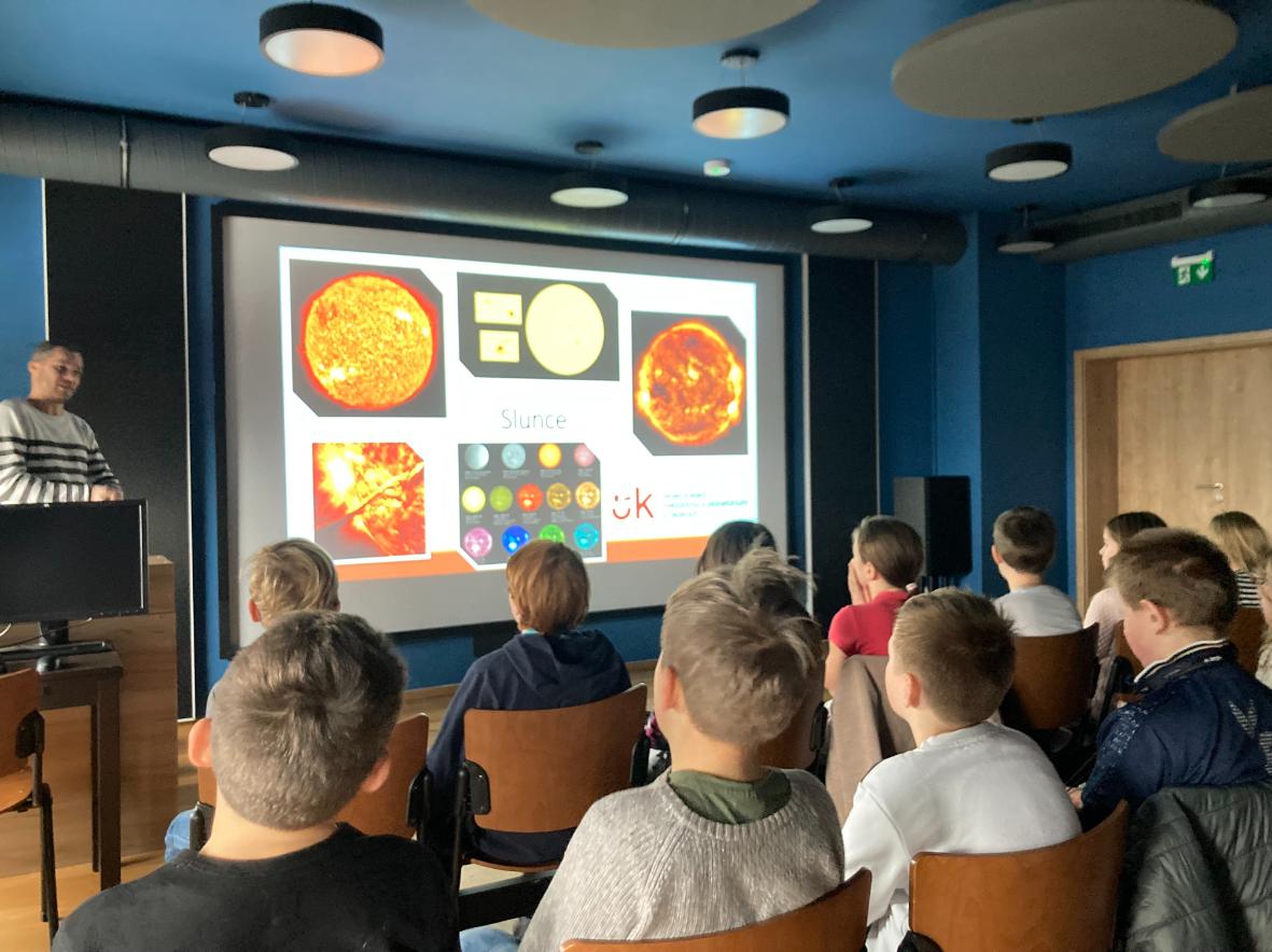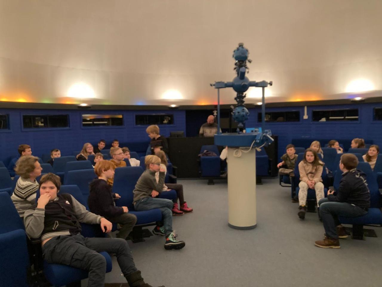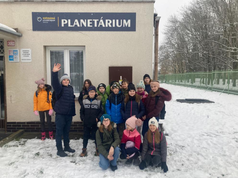 Jak nejlépe zahájit přírodovědné téma Vesmír? Přece návštěvou planetária a hvězdárny! Ač jsme díky nepřízni počasí nemohli 6. prosince 2023 pozorovat reálné nebe, noční oblohu jsme viděli díky obrazům na sférickému stropu. Lektor nás provedl vesmírným prostředím, seznámil s pohyby Slunce, Měsíce a hvězd. Vysvětlil nám střídání dne a noci, fází Měsíce a ročních období.