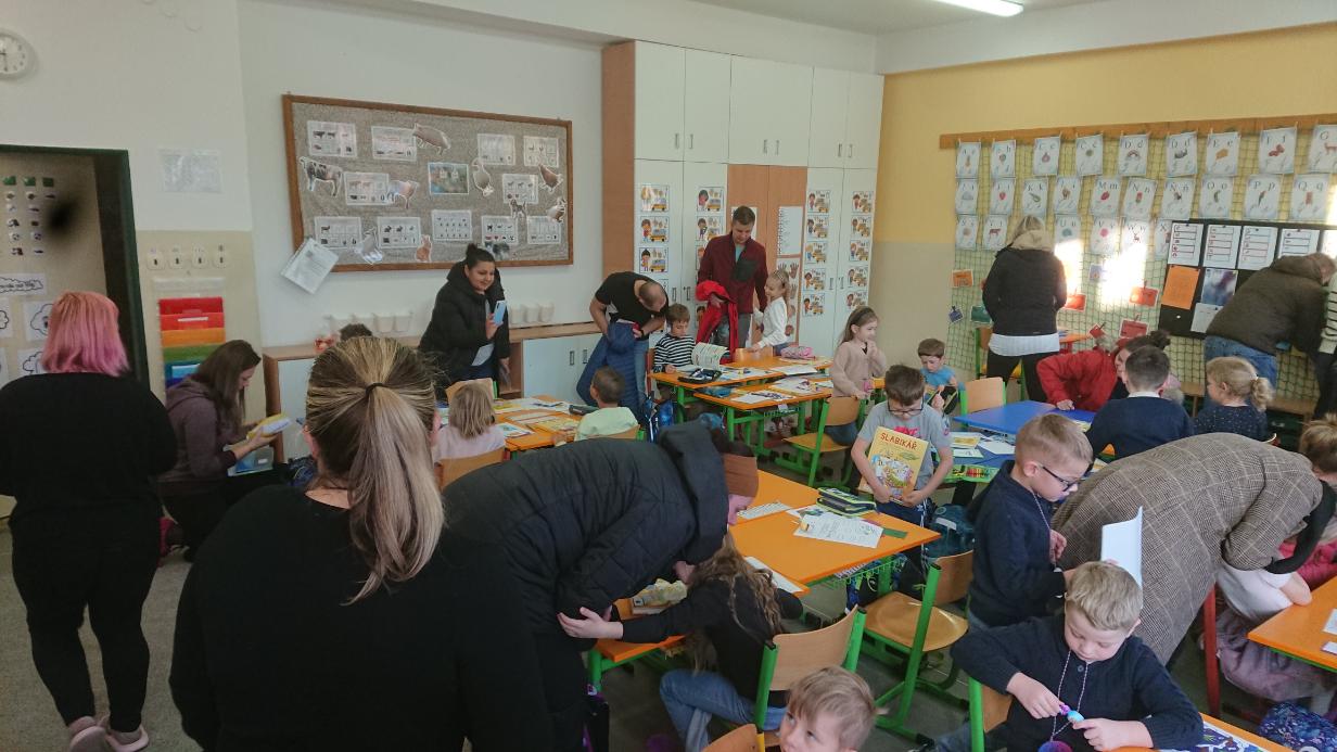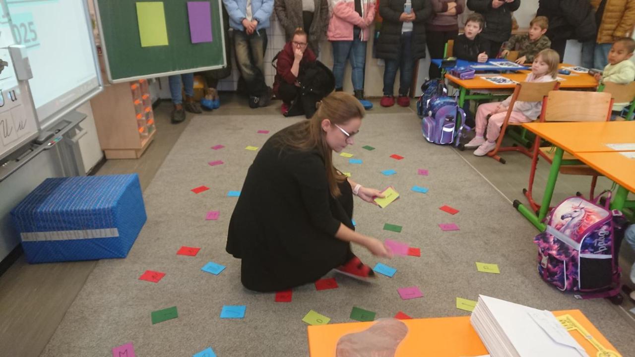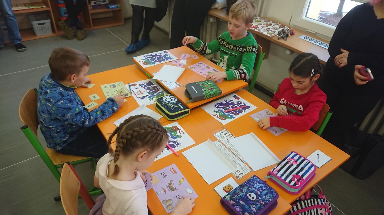 V pátek 28. listopadu 2025 proběhla v 1. třídě „SLAVNOST SLABIKÁŘE“. Prvňáčci pomáhali vodníkovi „Písmenku“ osvobodit rybičky a získávali klíče. V jednotlivých úkolech ukázali přítomným rodičům, co se za tři měsíce naučili – např. vyhledávání a spojování velkých, malých tiskacích i psacích písmen, určování počátečního písmena, tvoření slov ze slabik a čtení. Po vysvobození rybiček si každý prvňáček přestřihl provázek z tajné krabice a pak jsme se mohli podívat dovnitř. Většina tušila, co se uvnitř ukrývá – ano, slabikář. Všichni k novému slabikáři dostali medaili, diplom pro zachránce rybiček, pamětní list s klíčem a také malou sladkost. Všem děkujeme za účast.