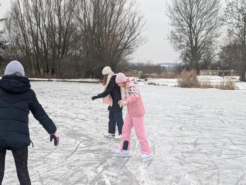 První výzva? Brusle. Na první pohled to vypadá ladně – jako v televizi, když se krasobruslařky vznášejí nad ledem. Realita? Naše první metry připomínaly spíše tanec čerstvě narozených koloušků na namrzlém chodníku. Smích se ozýval celým kluzištěm, a i když se občas někdo „šel zblízka podívat na kvalitu ledu“, hned jsme se zase zvedaly. Modřiny sice budou, ale ty zážitky za to stojí!