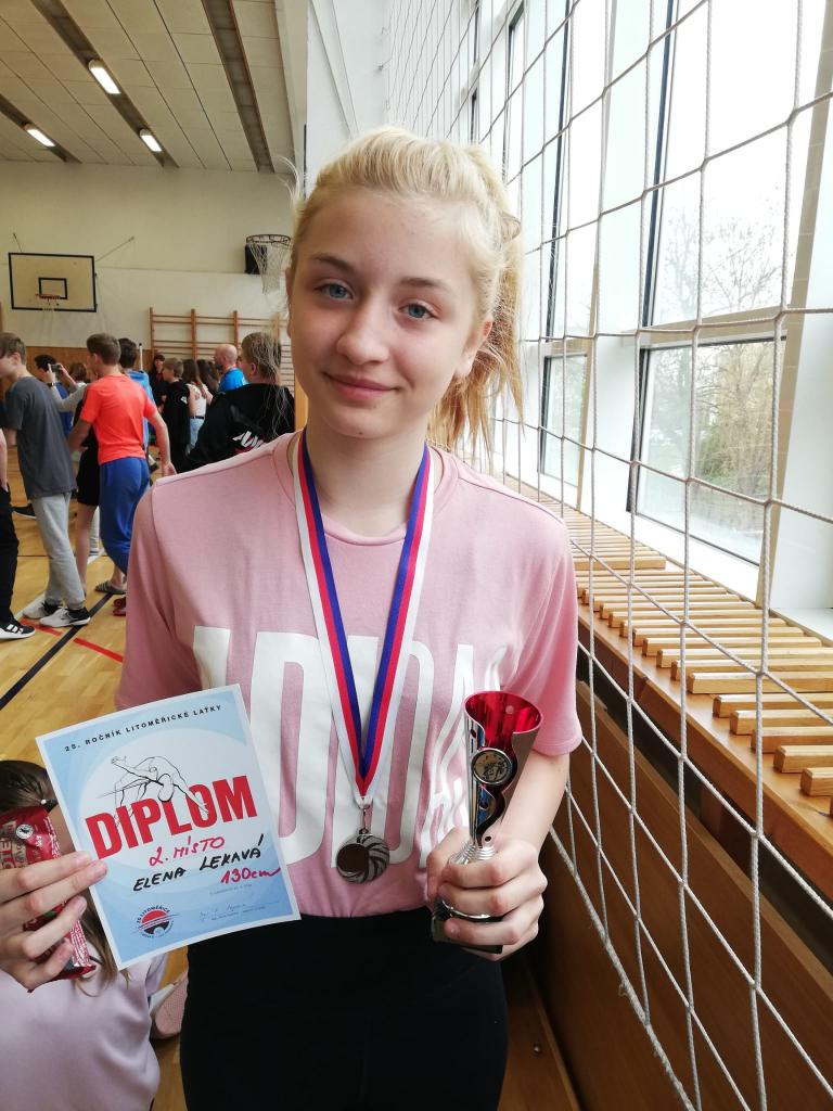 25. ročník atletické soutěže Litoměřická laťka se 20. dubna 2022 konal na Základní škole Ladova Litoměřice. Zúčastnilo se 50 dětí z Litoměřic a z Liběšic. I když se nejednalo o školní soutěž, ale o klání mezi dětmi z atletických klubů, musíme vás informovat o velkém úspěchu naší žákyně Eleny Lekavé. Získala totiž nádherné 2. místo ve skoku vysokém! Velká gratulace za skvělou reprezentaci školy.