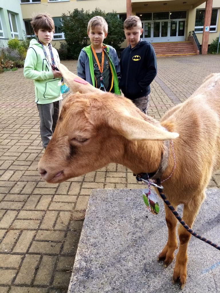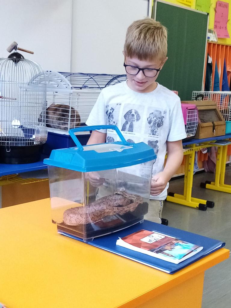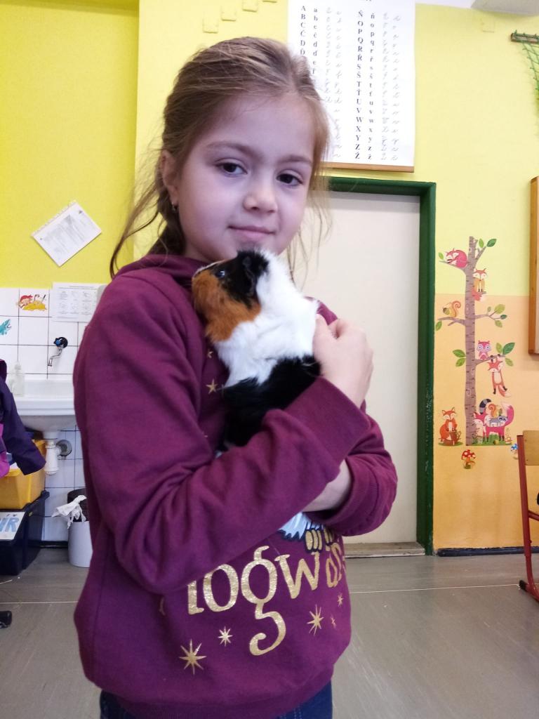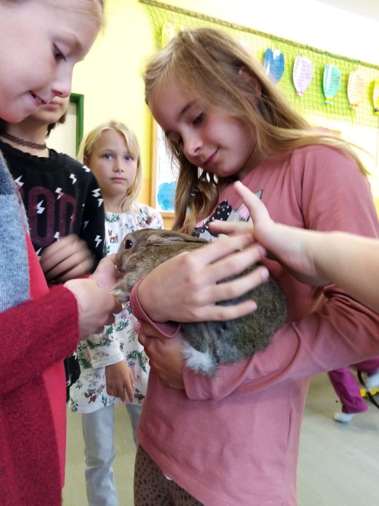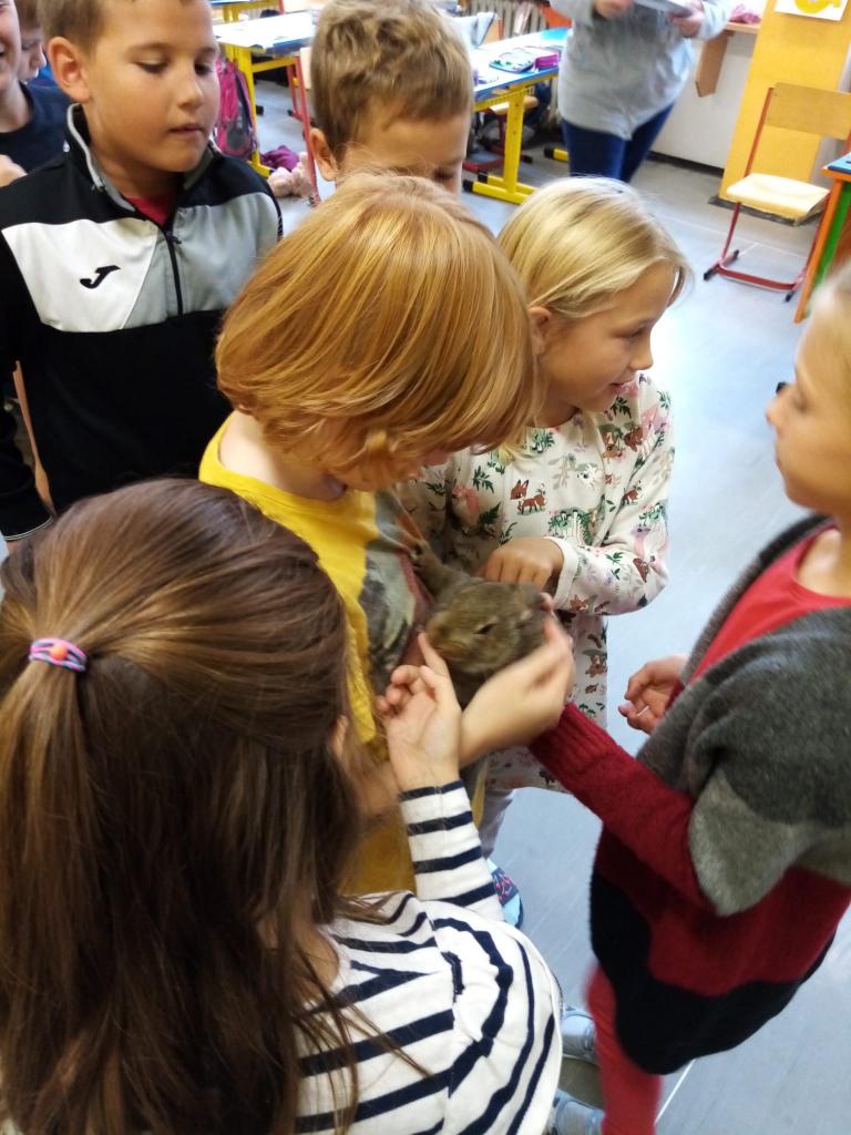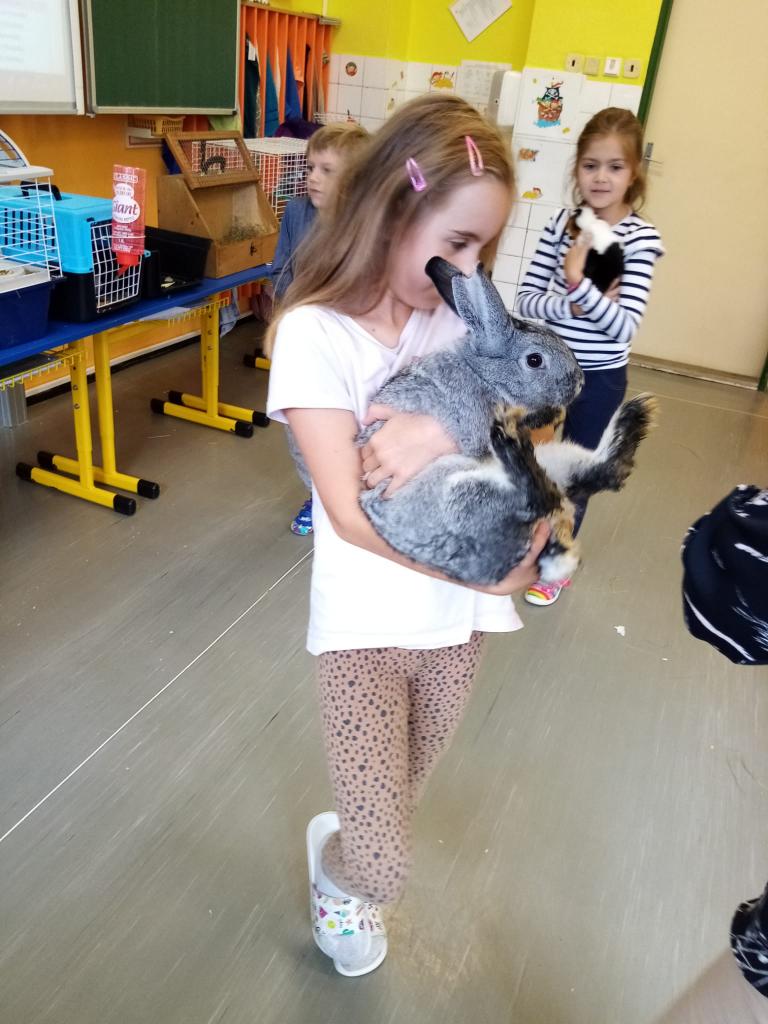 Už třetím rokem slavíme Den zvířat přímo ve škole. Osobně se přišli do třetí třídy podívat králíci, morčata, potkan, kanárek, rybičky a užovka červená. Venku nás pak čekala koza Růženka, labradorka Lilinka a čiperná Bibinka.