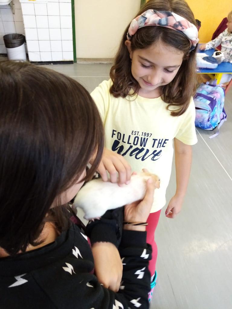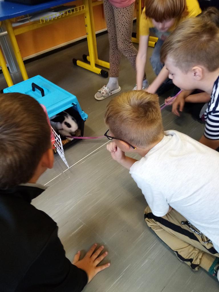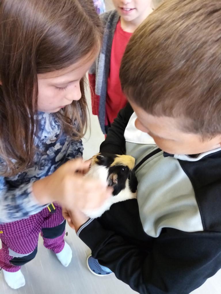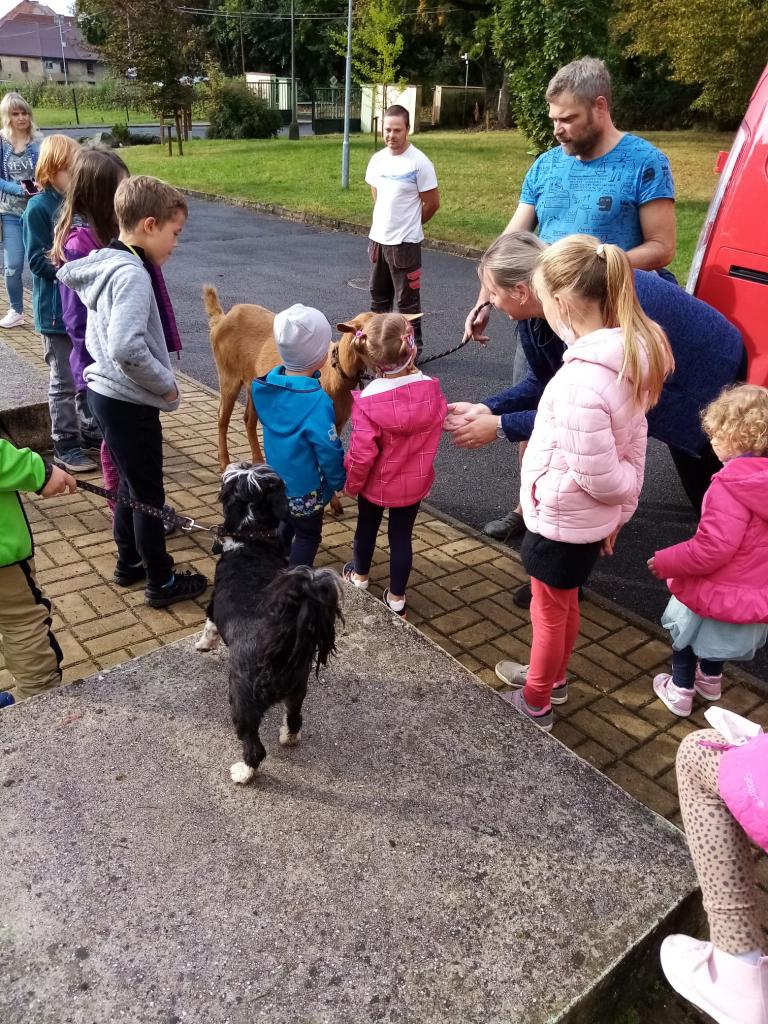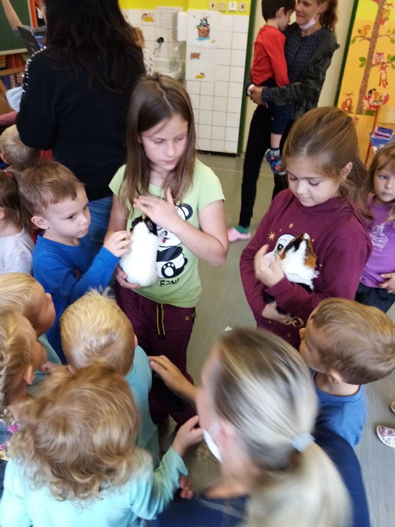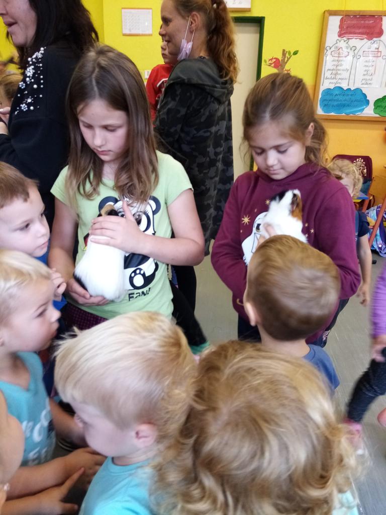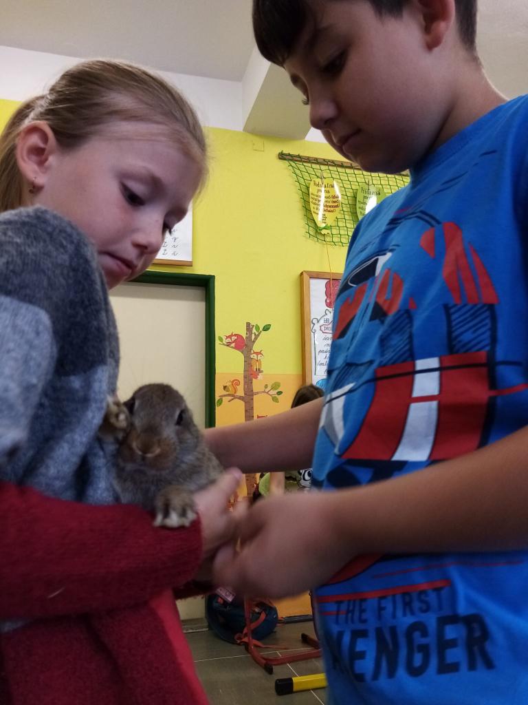 Už třetím rokem slavíme Den zvířat přímo ve škole. Osobně se přišli do třetí třídy podívat králíci, morčata, potkan, kanárek, rybičky a užovka červená. Venku nás pak čekala koza Růženka, labradorka Lilinka a čiperná Bibinka.