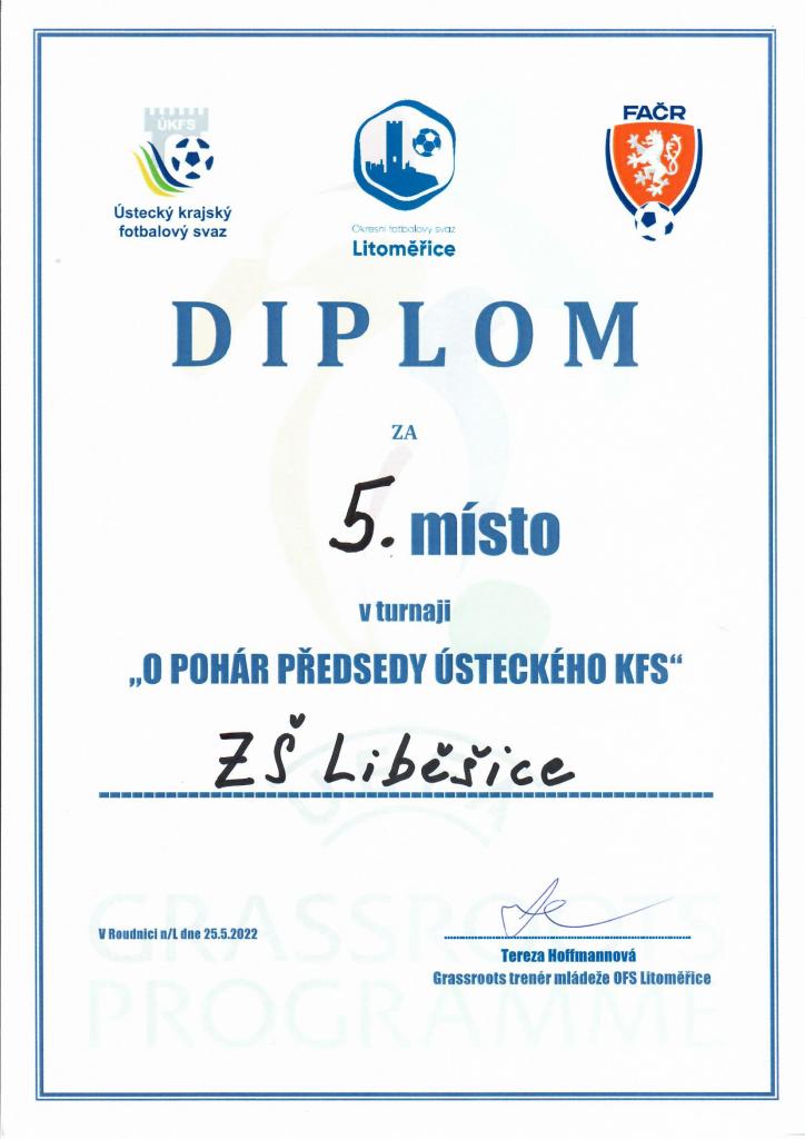 Dne 25. května 2022 se naši chlapci a jedna dívka z druhého stupně zúčastnili 1. ročníku fotbalového utkání základních škol „O POHÁR PŘEDSEDY ÚSTECKÉHO KFS“.