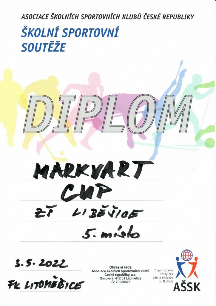 V úterý 3. května 2022 nastoupili naši fotbaloví žáci na turnaji v minikopané. Tradiční Markvart cup přivítal 12 týmů litoměřického okresu na hřišti Základní školy U Stadionu. Hrálo se na malém hřišti v hracím čase 2x 10 minut. Naši reprezentanti v sestavě Krupička, Nepovím T., Martinovitz V., Rajman M., Hambálek, Efler, Kazda, Šubrt, Božík a Hrabák, se utkali v základní skupině s litoměřickými manšafty ZŠ Havlíčkova a domácím ZŠ U Stadionu. V prvém případě vyvíjeli naší hráči po celou dobu tlak na soupeře, měli více ze hry a prakticky nenechali protihráče u míče. Bohužel ke konci hrací doby dostali nešťastný gól a utkání tak prohráli. S druhým soupeřem skupiny bylo pro postup ze skupiny potřeba zvítězit. Lehká deprivace po první prohře a evidentně těžší soupeř nebyly dobrými průvodci našich borců. Kluci se uchylovali spíše k obraně, hráli jako svázaní. Bodem zlomu byl však nenadálý příjezd jejich kauče, pana Hambálka, který okamžitě zasáhl. Jednoznačnými hlasitými pokyny instruoval hráče, kteří trenérovy rady poslechli. Tím došlo k zásadnímu zvratu v utkání - naši reprezentanti vstřelili dvě branky, porazili soupeře a způsobili mu ostudu na domácím hřišti, a postoupili tak ze skupiny do čtvrtfinále. Zde se již nepovedlo přehrát těžkého soupeře, ale i tak z toho bylo krásné 5. místo! Hoši děkujem!