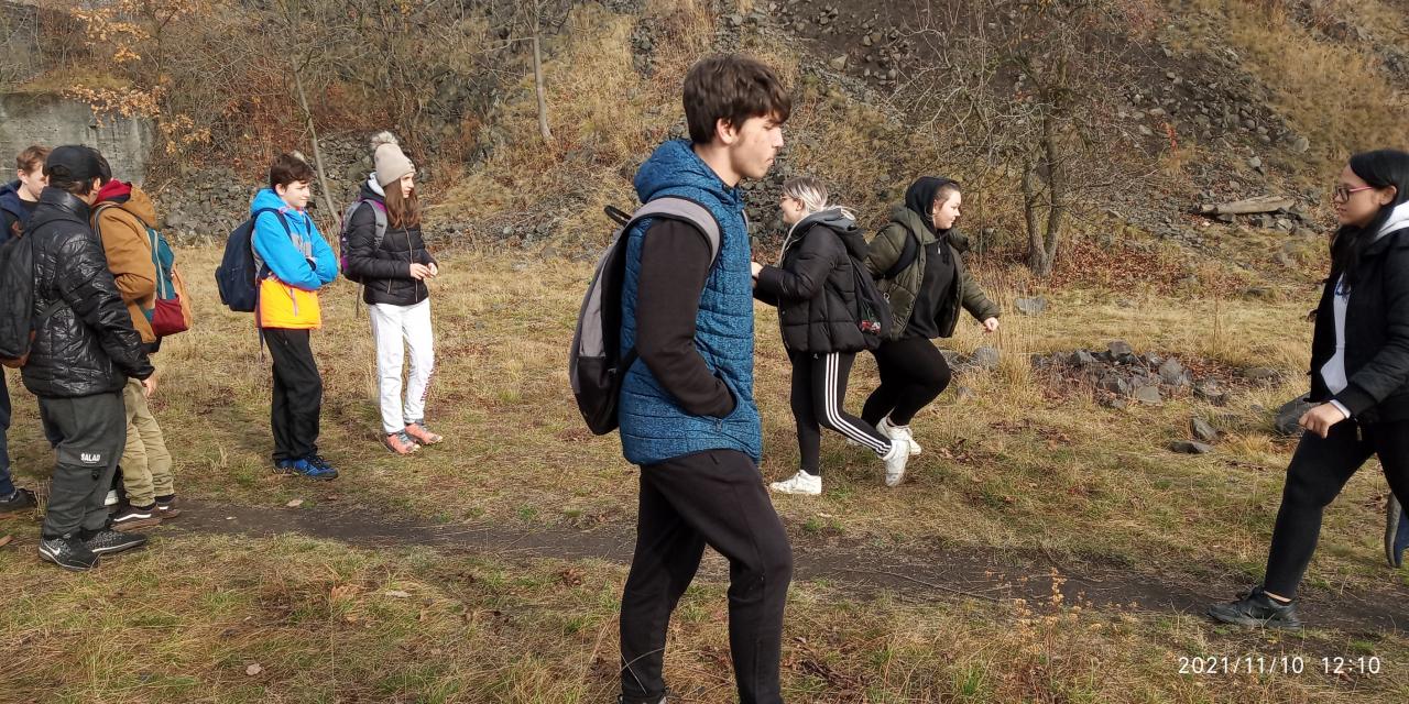 Ve středu 10. listopadu 2021 jsme vyrazili s žáky 9. ročníku ven do přírody. Po příjezdu do Žalhostic jsme začali stoupat na jeden z vrcholů Českého Středohoří - Radobýl. Naším průvodcem byl Miloš Fejfárek, který pracuje v ekologickém středisku SEVER Litoměřice. Stali jsme se filmovým studiem a naším úkolem bylo vymyslet scénáře pro sci-fi film. Cestou jsme na sebe nechali působit přírodu, její zvuky, její barvy, její vůni apod.
