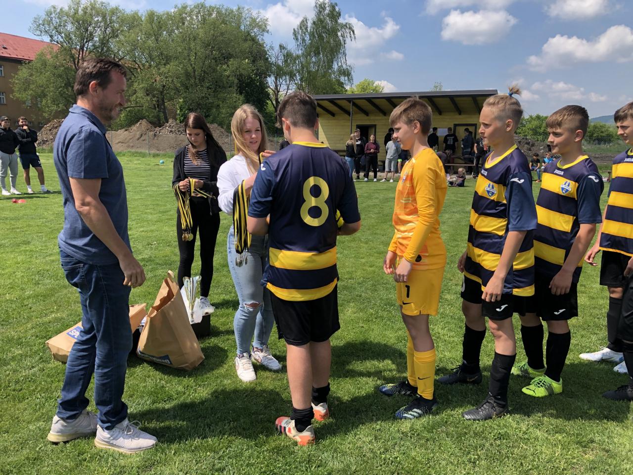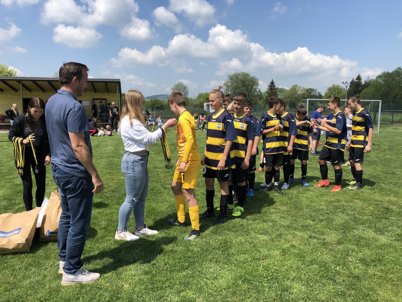Dne 18. května 2022 uspořádala základní škola ve Verneřicích tradiční fotbalové klání "Šmicer cup". Spolu s našimi chlapci a dívkou z druhého stupně se zúčastnili také hráči základních škol z Horní Police, Benešova nad Ploučnicí, Kravař a domácí Verneřice. Hrálo se na body systémem každý s každým. V prvním zápase jsme změřili naše síly s týmem z Kravař a po relativně vyrovnaném utkání jsme zvítězili bodýlkem Marka Eflera 1:0. Dalším soupeřem byl tým Horní Police, jemuž jsme podlehli 0:2, nutno říci, že pomezní rozhodčí nás poškodil neuznáním jedné branky v domění, že šlo o off-side. My kluci s Liběšic se nehádáme a víme svoje. Aktivitu jsme proto soustředili do třetího utkání s místními hráči. A to se nám vyplatilo, neboť čtyřbrankovou prohru Verneřic nelze nazvat jinak, než debaklem před zraky velkého Vladimíra, který bedlivě sledoval celý turnaj. Nakonec jsme se utkali s týmem Benešova nad Ploučnicí, který jsme porazili 2:0 a tím jsme si zajistili radost a věčnou slávu v podobě krásného stříbrného místa. Svůj díl na tom nesou i trenéři pan Božík s panem Krupičkou! Trofej a medaile hráči přebírali z rukou Vladimíra Šmicera, někdejšího vítěze poháru UEFA, jehož jméno nese tato příjemná sportovní akce. Jakub Hambálek byl navíc oceněn jako nejlepší střelec turnaje. Kluci a holko, děkujem!! P.S.: Ta holka je Verča Hamouzová ze sedmičky, a je to skvělá brankářka!!!